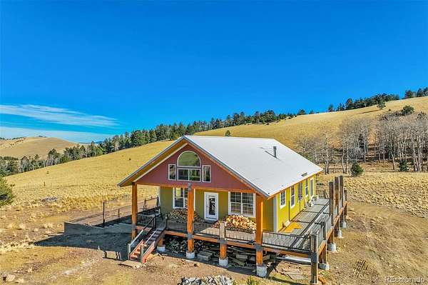 Escape the constraints of city living on this 80 acre off grid mountain holding where the hard work is already in place and the final vision is waiting for its new owner. Set high in the hills between Cañon City and Guffey, the 2015 built home offers approximately 3,072 square feet on three levels with 3 bedroom and 2 bath potential, wrapped in big sky views, clean air and quiet. The main floor blends living, dining, and kitchen spaces with soaring ceilings and picture windows framing open country, while a wide covered deck invites coffee, evening conversation, and stargazing. Above, a loft level with additional attic style rooms and a framed bath can evolve into bunk space, studio, or office, and below, an enormous drive in garage and shop area provides sheltered parking for trucks, tractors, and toys plus storage for tools and gear. Serious infrastructure anchors the project, including a robust domestic well, extensive insulation, pellet and propane stoves, solar power equipment with panel sheds, and thoughtfully overbuilt foundations and structural members that speak to long term durability. With no HOA or covenants and abundant room for trails, target practice, gardens, or future outbuildings, this property is ideal for the buyer who values independence and self-reliance yet wants practical proximity to year round recreation and regional services. Bring your contractor, building plans, and imagination to complete the interior finishes, design the septic system that matches your layout, and shape this rare Colorado retreat into the mountain base camp, homestead or legacy escape you have been searching for. Rolling pastures, aspen pockets, and timbered slopes create natural privacy, gentle view sites, and wildlife habitat while still leaving abundant open ground for future barns or high tunnel gardens. In a market where land, labor, and materials keep climbing, starting with this much finished structure and acreage is a strategic move for a serious mountain buyer!