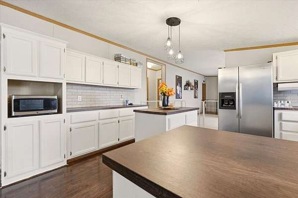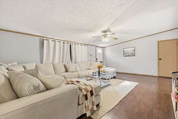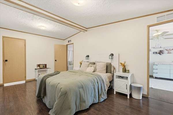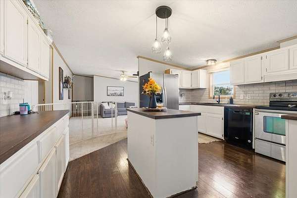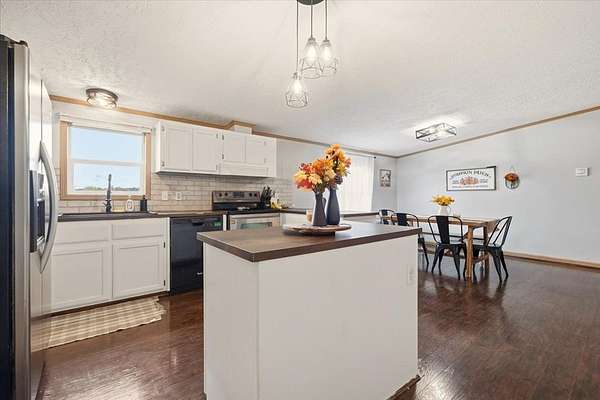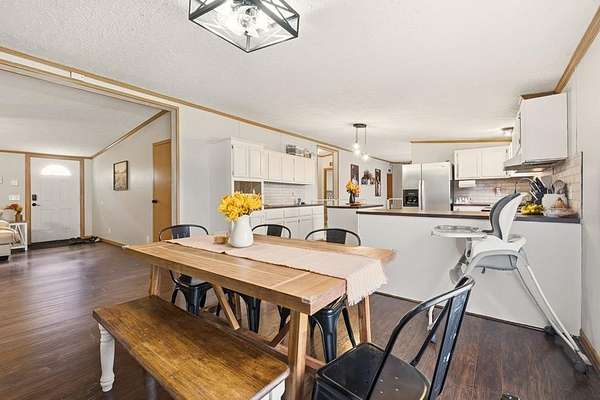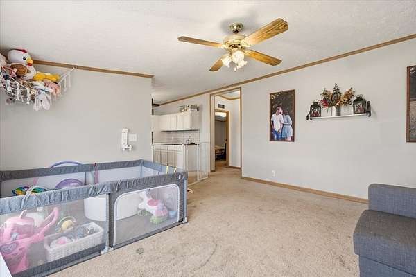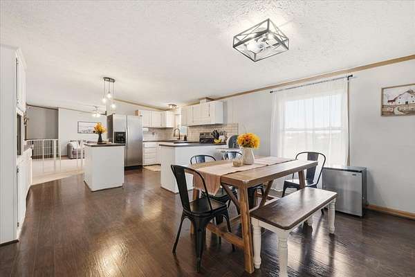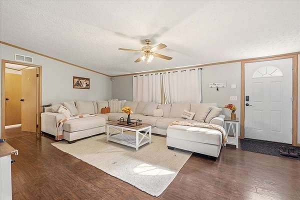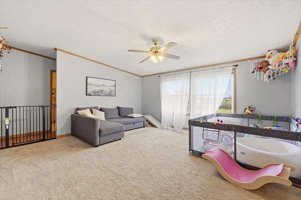 Welcome to 1440 Township Rd 1106, a ranch-style home in Crestview Schools situated on 3 acres. This 4 bed, 3 bath home features over 2,300 sq ft of living space & 2.2 acres of fenced-in pasture. Step inside to find an open-concept kitchen & dining area with cabinet & countertop space, an island, & a new backsplash. The home includes both a living room & family room, perfect for relaxing or entertaining. The primary suite features an attached den, sunroom access, walk-in closet, & a private full bath. The primary bath features a new vanity, toilet, & mirrors. Beds 2 & 3 share a Jack & Jill bath, while all closets include built-in shelving. Additional highlights include a 2-car attached garage, cathedral ceilings, vinyl windows, metal roof, & a metal pole barn with 3 horse stalls. Recent updates include a new heat pump, & a freshly painted sunroom floor. With the majority of the property fenced in, this home is ready for animals or outdoor hobbies. Schedule your showing today!
