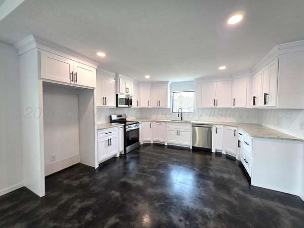Welcome to peaceful country living with modern upgrades! This beautifully updated 3-bedroom, 2-bath home also has a 2-car oversized garage attached by a breezeway & sits on 5 secluded acres in a remote, private setting surrounded by mature trees--the perfect place to unwind and enjoy the quiet. This property has been completely remodeled inside and out, offering a true move-in-ready home with high-end touches throughout. Step inside to find stained concrete floors, new windows, custom cabinetry, granite countertops, & an open floorplan with a massive living room, anchored by a cozy wood-burning stove, creating the ideal space to relax!. If you've been searching for a secluded, beautifully remodeled home with trees, space, and room to breathe--this one is a must see!
