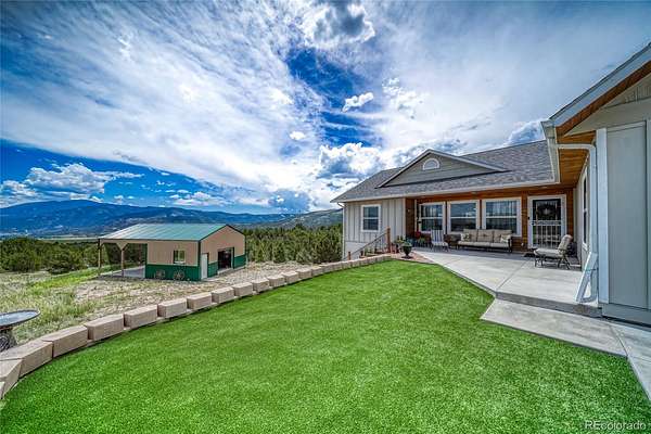 From Highway 285, go west on County Road 140 to the Weldon Creek Estates entrance gate. Use the gate code provided in private remarks and the home is the first home on the left going up the hill.