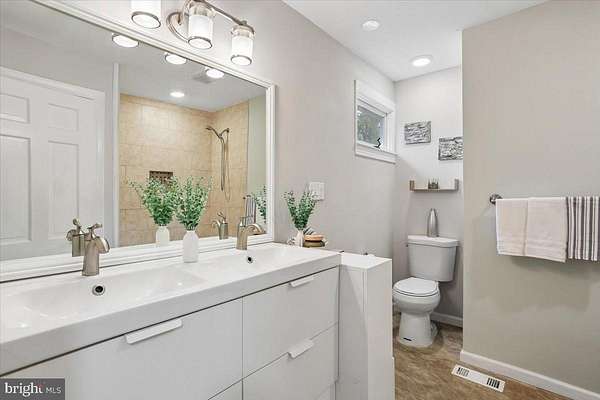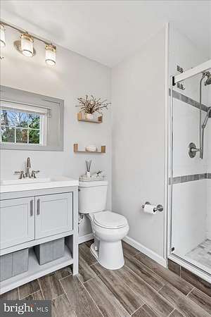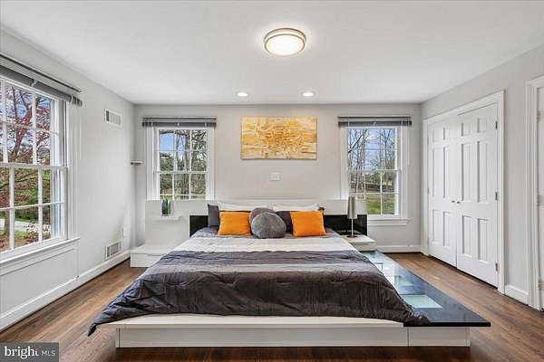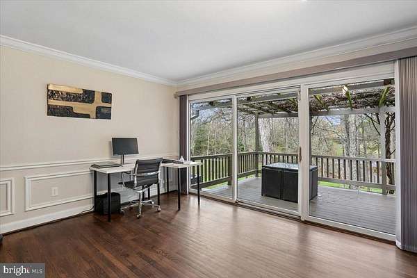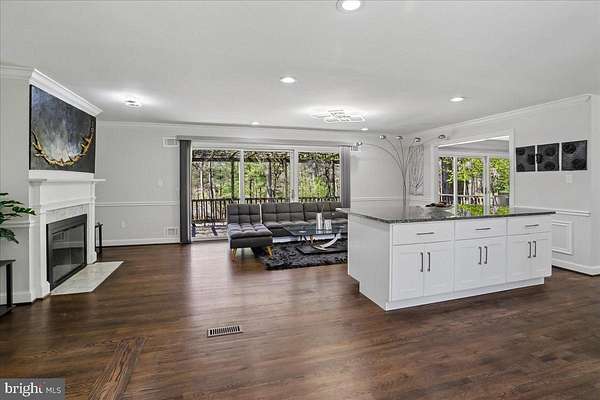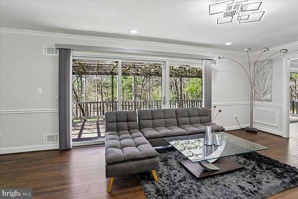 Discover 14400 Jones Lane, a beautifully designed modern split-level set on nearly 2.5 wooded and private acres in sought-after North Potomac - this is a home that truly must be experienced in person! Offering 3,566 square feet across three finished levels, this impressive home features five bedrooms and three full bathrooms. Defined by light-filled spaces, contemporary finishes, and a strong connection to the outdoors, the property combines comfortable living space with a striking natural setting. A gated drive, flagstone walkway, and double front doors welcome you into the residence, where hardwood floors, recessed lighting, high-end finishes, and an abundance of windows create a bright and inviting atmosphere. The back of the home is defined by walls of windows that flood the interior with natural light. The open main level living area centers around a gourmet kitchen with granite countertops, a large center island with breakfast bar, stainless steel appliances, a subway tile backsplash, and crisp white cabinetry. The kitchen flows into a breakfast area framed by a bay window and into a living room/sitting area with a dual-sided fireplace, large windows, and sliding glass doors opening to the deck. Adjacent to the kitchen, the formal dining room features wainscoting and a wall of windows with sliding glass door access to the deck. A private office with built-ins, a dual-sided fireplace, and another wall of windows with sliding glass door access provides additional flexibility and completes the main level. Outdoor living is a standout feature of the home. Spanning the length of the main level, the expansive deck creates an exceptional extension of the interior living space and includes a trellis and stone retaining wall that add character and definition. Multiple access points from the main level make it easy to enjoy the peaceful backyard setting, while the surrounding wooded acreage enhances the sense of privacy. Upstairs, the style and design continue for a cohesive look. The spacious primary suite offers an en-suite bath with a glass door shower and contemporary tile and finishes. Two additional bedrooms and a second full bath complete the upper level. Step down from the main level to the expansive lower level, which includes a fourth bedroom, full bath, dressing area, and a family room with a fireplace set within a stone accent mantel. Doors from both the family room and bedroom provide direct access to the patio and backyard, and a mudroom with outside access adds everyday convenience. A two-car detached garage provides exterior an extra storage room + a bonus lower level perfect for use as a wine cellar or cold storage. This home offers a wonderful combination of space, design, comfort, and convenience, all within minutes of shopping, dining, entertainment, recreation, and major commuter routes. Extensively pre-inspected with septic, well, water quality, radon, and full home inspection completed - providing buyers with confidence and transparency.