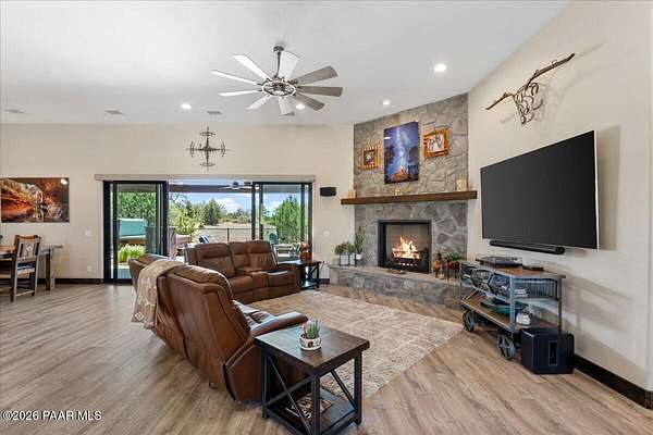 Seller will contribute $40,000 towards buyers social club membership!!Located in the highly sought-after gated community of Talking Rock Ranch, this beautifully crafted newer home by a respected builder offers a perfect blend of quality, comfort, and privacy. The property includes an additional lot, providing extra space and helping preserve the surrounding views. Inside, the open-concept design is both inviting and functional, featuring rustic touches, abundant natural light, and a seamless flow ideal for everyday living and entertaining. All bedrooms have been upgraded with stylish laminate flooring, creating a clean, modern feel throughout. A private en-suite bedroom offers flexibility for guests, extended family, or a dedicated retreat. Designed to embrace Arizona's indoor-outdoor lifestyle, the home features three sliding glass doors that open to a thoughtfully landscaped backyard. The fully fenced yard is an entertainer's dream, complete with low-maintenance artificial turf, a custom fire pit, ambient landscape lighting, and a relaxing hot tub, perfect for enjoying peaceful evenings under the stars. Additional features include a well-appointed laundry room with utility sink and a whole-house surge protector for added convenience and peace of mind. With its desirable location, upgraded features, and added lot for enhanced privacy, this home offers a rare opportunity to enjoy the best of Talking Rock Ranch living.