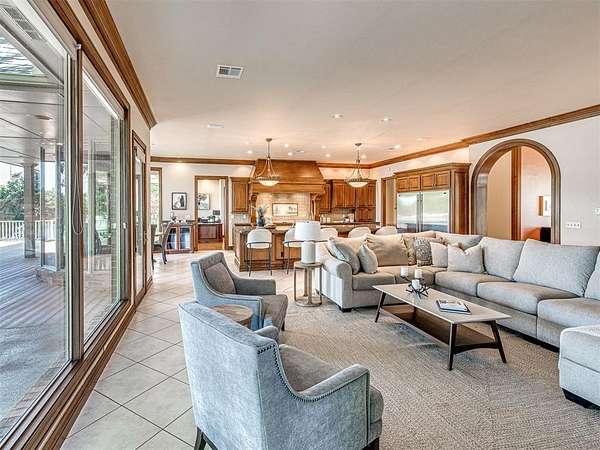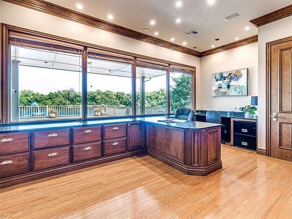 Step into lakeside luxury at its finest. This exceptional home was custom-built and the attention to detail is nothing short of extraordinary. Nestled on the shores of a stunning 20-acre lake. With unmatched views, serene surroundings, and ample space for both relaxation and recreation, this property offers the perfect blend of privacy and convenience. The grand entry welcomes you with a wide arched doorway. The foyers' stunning architectural detail sets the tone for this remarkable home. The formal dining room boasts a soaring ceiling with large windows while the formal living room offers a sitting area with an elegant fireplace. The spacious kitchen, family room, office and primary bedroom all have massive windows that overlook the lake. The kitchen is a chef's dream with brand new appliances, a large island, built-ins, and abundant storage, perfect for indoor and outdoor entertaining. The master suite has a multi-purpose room that opens to the outdoor living area. With too many amenities to list, this home is a rare opportunity to experience. Whether you're kayaking at sunrise, enjoying the expansive grounds, or entertaining guests in a beautifully designed home, every moment here is nothing short of extraordinary. Don't miss the opportunity to own this rare waterfront retreat located in Piedmont school district. Beyond the main residence, the estate features a 40x60 shop with an apartment. Providing additional space for guests of extended family. Perfect for your storage or car collection. This home has a brand new roof.