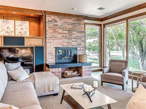 From NW Expressway go east onto Memorial Rd. for 2.1 miles until you get to the white gate/ entrance of property. Home is on south side of street.
