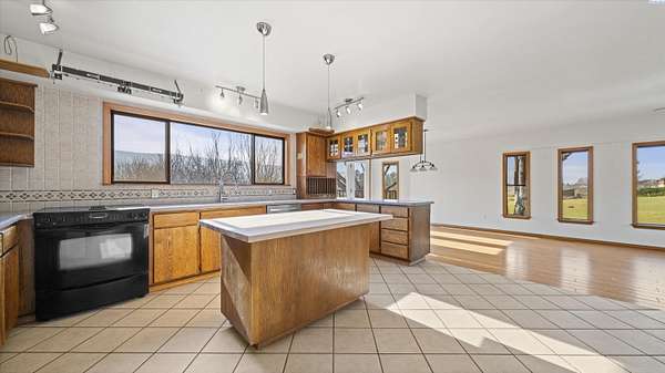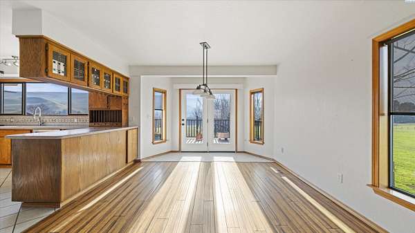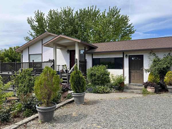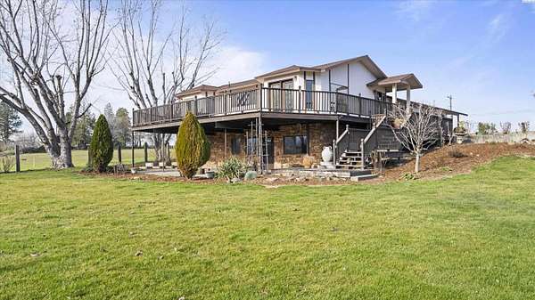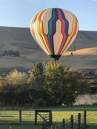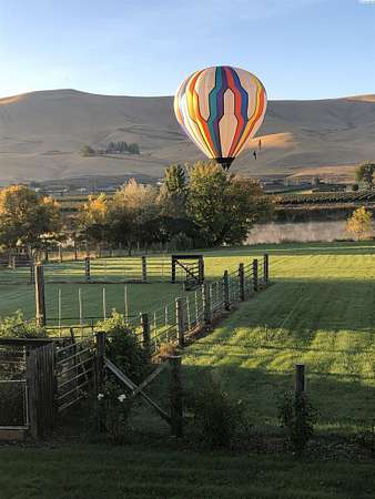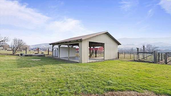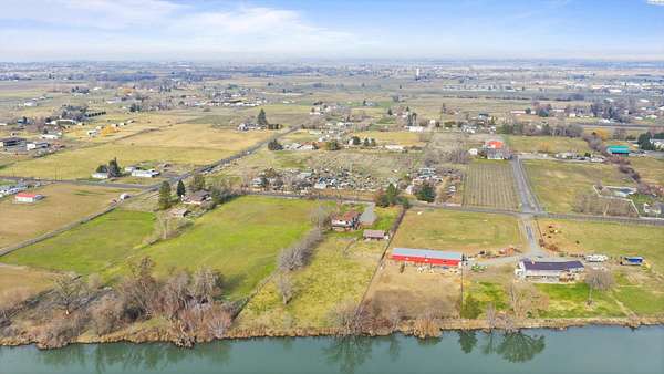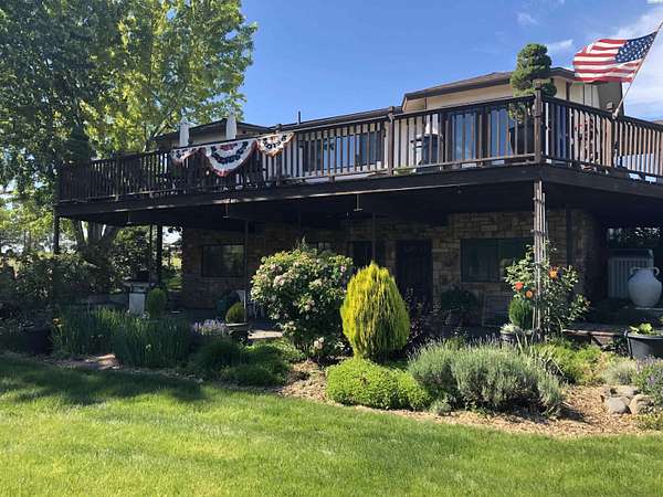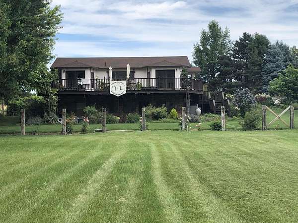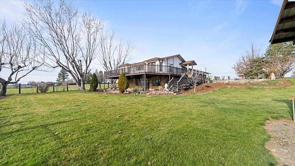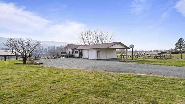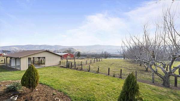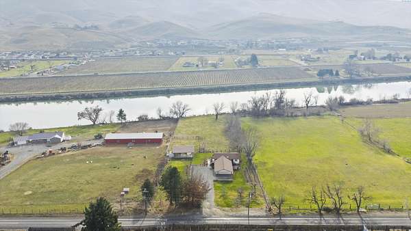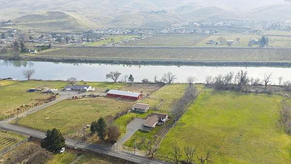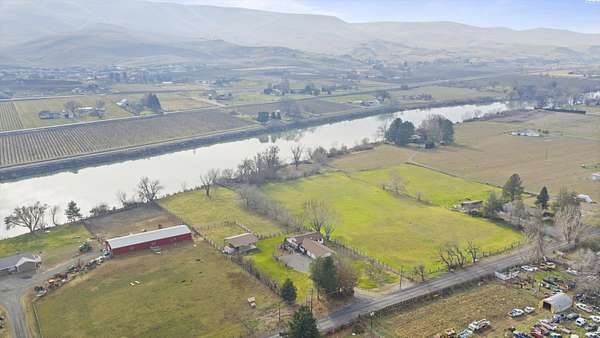 MLS# 290131 144001 W North River Rd in Prosser is a truly exceptional property set on over two acres with more than 170 feet of river frontage, offering sweeping water views with a backdrop of rolling hills. The picturesque setting has even hosted multiple weddings, a testament to its natural beauty. It is landscaped with an abundance of thoughtfully placed flowers and mature trees - just wait until things start to bloom! The fully fenced hay-grass pasture, separate corral, and large pole barn (equipped with water and electricity) are perfectly suited for horses, cows, goats, or other livestock, while a charming orchard and vineyard enhance both the character of the property and the lifestyle it offers. The property has 1.36 acres of water rights, which has fully supplied any of the many hats that the property has worn. Inside, a spacious kitchen with walk in pantry, granite countertops, and a large butcher block island overlooks an expansive deck with breathtaking river and mountain views, ideal for both quiet mornings with a book or hosting summer parties. The dining room is perfectly sized for a long hosting table and gathering by the fireplace, complemented by two inviting living spaces for cozy conversations. Just a few steps down, a versatile studio or bonus room--once an artist's space--serves beautifully as an office, playroom, or private retreat. Four bedrooms and four bathrooms provide ample space for everyone. The daylight basement opens to a generous shaded patio, again a great hosting space. Located just minutes from the heart of Prosser or easy highway access, the house has undeniable charm and this kind of property is a rare find!