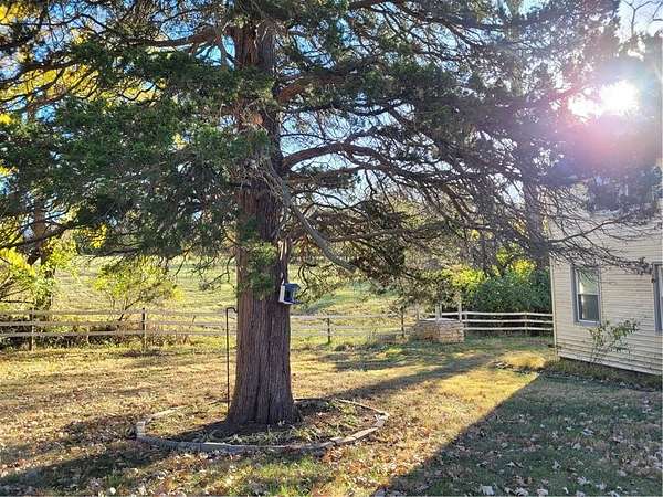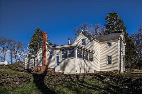 10 Acre WOODED PARADISE IN LEE'S SUMMIT SCHOOL DISTRICT. PRIVATE tree-lined gravel drive opens to spectacular rolling hills, abundant wildlilfe, walnut trees, 2-story house & garage, detached 1-car w/shop, 5-stall HORSE BARN with indoor arena. Fenced pastures. Perfect Opportunity to own your oasis/retreat without the long commute. Home needs updating but in solid condition, central heat for easy add of central air. Kitchen appliances stay. Build your dream home in a storybook setting that is uniquely beautiful or just relax and enjoy some hot chocolate and watch the deer from your porch.