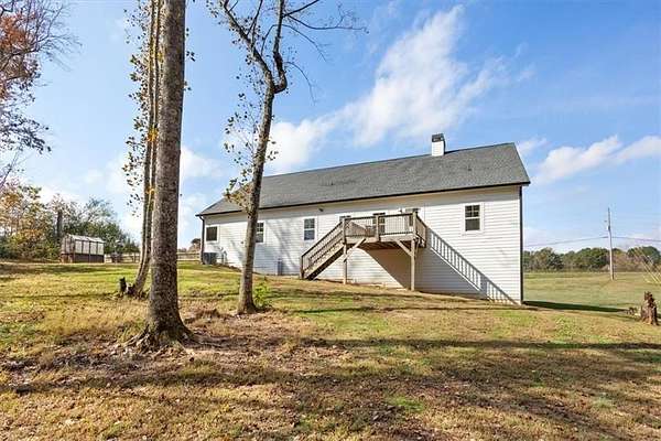 Charming Modern Farmhouse on 4.82 Private Acres! Welcome home to this stunning farmhouse retreat perfectly situated on a partially wooded 4.82-acre lot, offering the ideal blend of privacy and modern comfort. From the inviting front porch to the spacious open-concept interior, this home is designed for both relaxation and entertaining. The front yard is beautifully cleared and grassy, providing a perfect space for outdoor play or gatherings, while the backyard offers a peaceful wooded backdrop for added privacy. Enjoy morning coffee or evening sunsets from the back deck. Enjoy your own fenced garden area with raised beds and a charming picket fence-perfect for growing flowers, herbs, or vegetables. Step inside to a light-filled great room featuring cathedral ceilings and a seamless flow into the dining area and chef's kitchen. The kitchen boasts custom crisp, white cabinetry, gleaming granite countertops, and high-end GE Cafe appliances, making it the heart of the home. A separate office or optional formal dining room offers flexible space to fit your lifestyle. The luxurious master suite is a true retreat, featuring a huge walk-in closet and a spa-inspired bath with dual vanities, a soaking tub, and a large tiled shower filled with natural light. The split bedroom floor plan provides three spacious secondary bedrooms and a beautifully appointed hall bath with stylish tile flooring and a tiled tub/shower combo. Enjoy the convenience of the dream laundry/mudroom, complete with custom cabinetry, abundant storage, and a sink - perfect for today's busy household. Additional highlights include a large two-car kitchen-level garage, extra-wide stairs leading to an unfinished basement (stubbed for a bath) offering endless possibilities, and a walk-up attic with permanent stairs, offering tons of storage, and ready to be finished into a bonus room or additional living space. This exceptional property combines modern amenities with timeless farmhouse charm. Don't miss this rare opportunity to own a piece of country paradise!