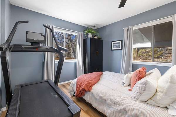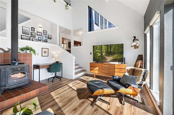 Tucked away on nearly 3 private acres just 12 minutes from downtown Fayetteville, this beautifully updated 3-bedroom, 2-bath home blends Chalet, A-frame inspired charm with modern upgrades. The split-level floor plan is filled with natural light, creating a bright, open feel that looks out into your own wooded paradise. Cosmetic upgrades include new paint, luxury vinyl flooring throughout, and fully redone kitchen and bathrooms. Even more important are the major improvements like a new roof in 2025, all new fiber cement siding, new hot water heater, and an expansive newly rebuilt deck - offering both peace of mind and standout curb appeal. Surrounded by mature trees and peaceful views, this property delivers privacy, style, and convenience in a hard to find price point. If you've been dreaming of living on some land while maintaining proximity to town, this one is for you!