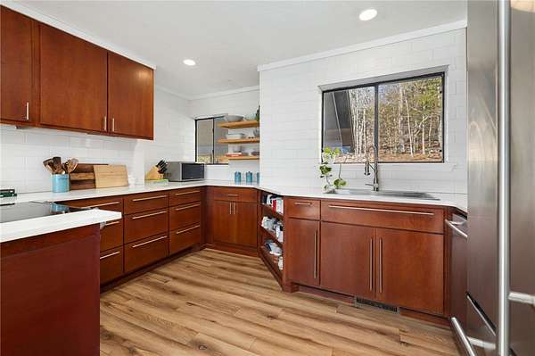 - Ceiling Fans, Eat In Kitchen, Quartz Counters, Walk In Closets, Window Treatments, Wood Burning Stove