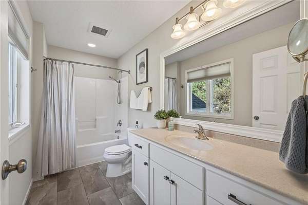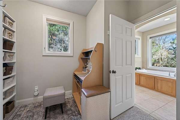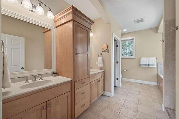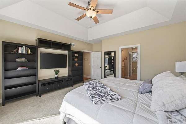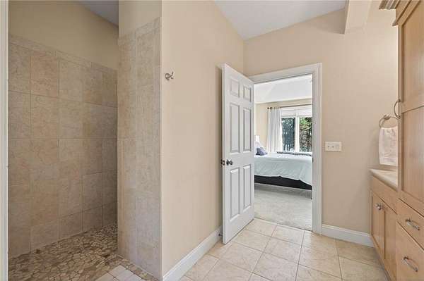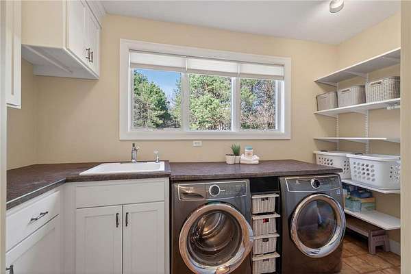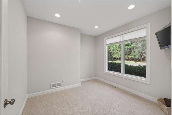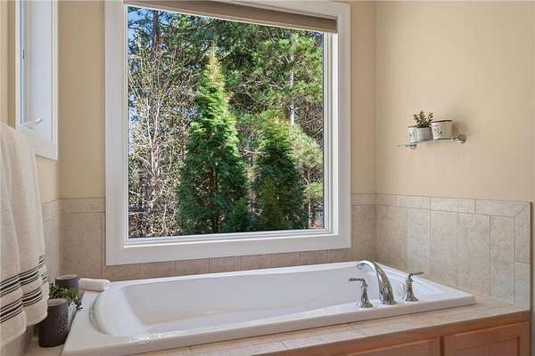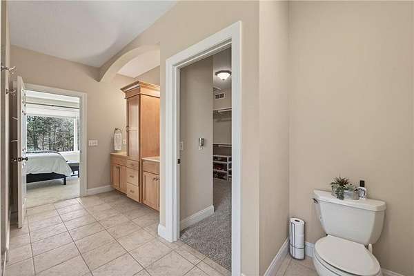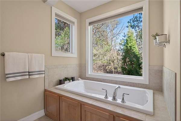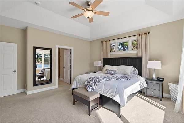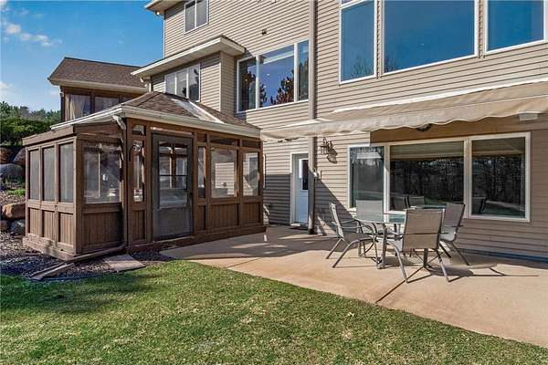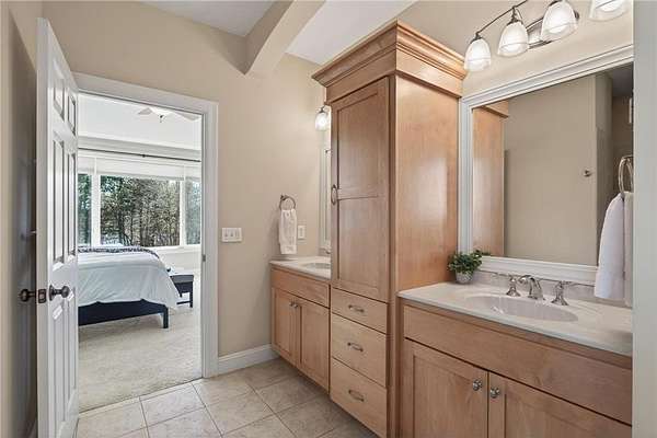 The main level showcases a luxurious primary bedroom with a walk-in closet and sweeping pond views, creating a private sanctuary. The open-concept design flows seamlessly into the kitchen with a double oven and generous gathering space, while a convenient main-level laundry room adds practical functionality. Oversized windows throughout flood the space with natural light, and a three-season porch provides a peaceful place to enjoy the water views and surrounding nature year-round.