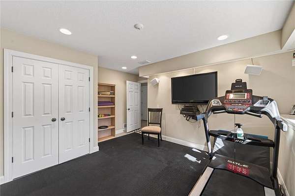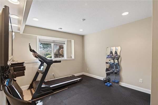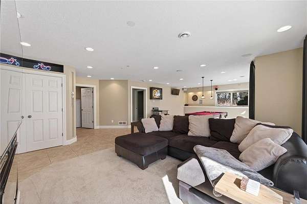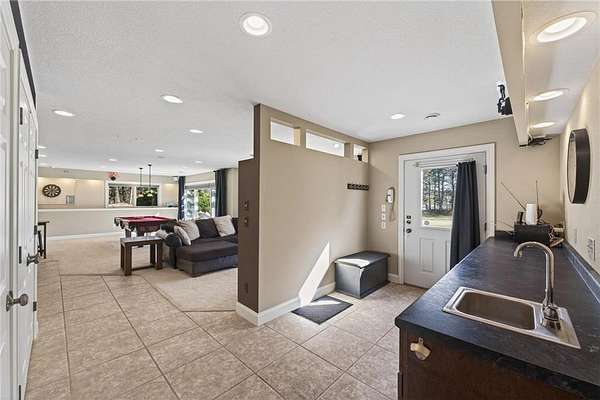 The walkout lower level expands the living space with a wet bar and large open areas that connect directly to the backyard for seamless indoor-outdoor living.
