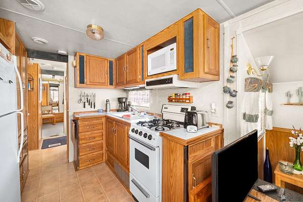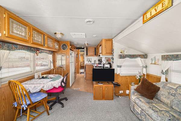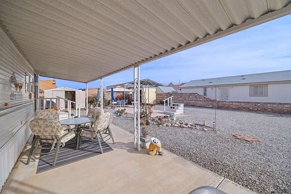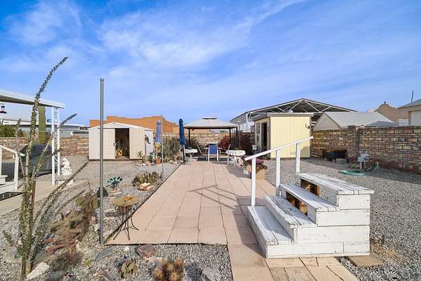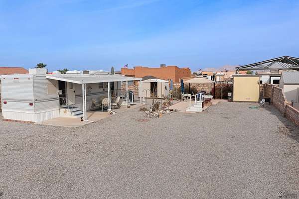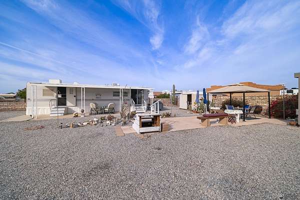 Est $1,130/moNice lot located east of Foothills Blvd near and surrounded by a golf course with amazing mountain views, featuring a well-maintained and fully furnished 1997 8x38 travel trailer affixed to the land with one bedroom and one bathroom, complemented by clean rock desert landscaping, wrought-iron double gates, two sheds (one equipped with a toilet and washer), two metered RV hookups (30-amp currently connected and a separate 50-amp), and a charming gazebo on pavers overlooking a peaceful pond.