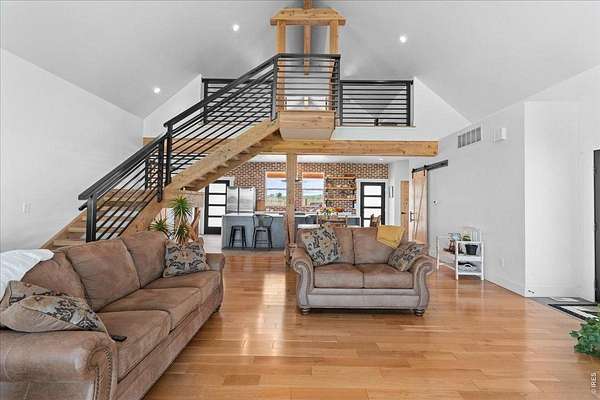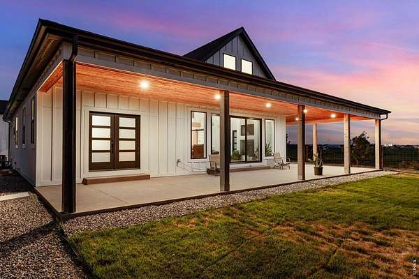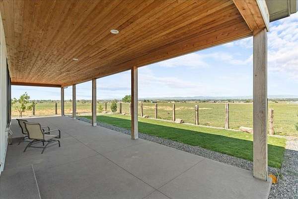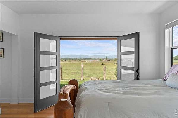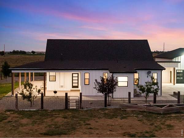Current Buyer Flaked so now is your chance. No inspection items were noted by the buyers. Tucked away behind a private gate, on 6.15 serene acres zoned Agricultural/Residential, this custom home offers the rare blend of rural privacy and refined living-framed by spectacular Rocky Mountain views. The exterior welcomes you with custom railroad tie and hog wire fencing, two expansive covered front patios with warm tongue-and-groove pine ceilings, and a massive backyard covered patio with sand-coated concrete. A well pump and water hydrant sit conveniently on the north side, supported by a full sprinkler and drip system. Step inside to a spacious foyer with tile flooring, coat closet, and rich 3-panel Alder doors with brushed bronze accents. The home's hypoallergenic design features solid hardwood floors and tile throughout, illuminated by double-pane energy-efficient windows. The open kitchen, ideal for both daily living and entertaining, boasts quartz countertops, a waterfall-edged center island, dual barn-doored pantries, soft-close drawers, stainless appliances-including a gas range with flat grill-and direct front patio access. The family room's vaulted ceilings and King pellet stove set the stage for mountain-view relaxation. The primary suite offers backyard access, dual walk-in closets, and a spa-inspired bath with quartz, overhead and wand shower, and dual lifted vanities. Additional main-level highlights include two hardwood-floored bedrooms (one with stunning views), a Jack-and-Jill bath, a corner office, guest half bath, and spacious laundry with washer/dryer included. A grand iron-railed staircase leads to a vaulted loft, 3/4 bath, and private guest bedroom with French doors. Mechanical excellence includes a Navien tankless water heater, Rheem water softener/filtration, Goodman A/C, and a 1,000-gallon owned propane tank. The oversized 1,094-sq-ft garage features a standard double door and a 12' RV door-ready for all your Colorado adventures.