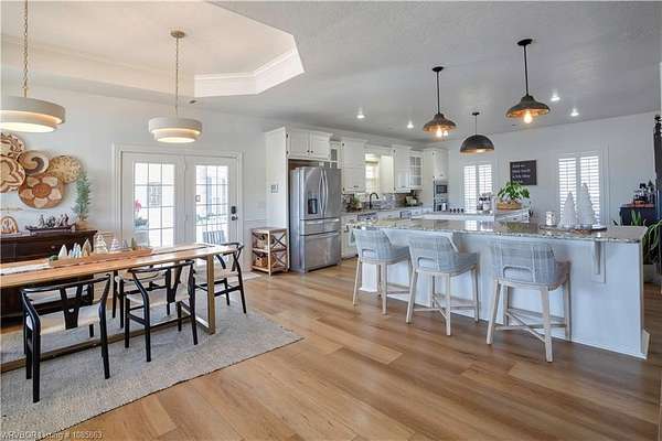 Nestled on 4.65 acres, this stunning home offers a rare blend of luxury living and unmatched functionality. The main home features an updated open concept design, with 4 bedrooms, 3 bathrooms, including an expansive primary suite complete with a fully renovated spa-inspired bathroom with soaking tub, and seamless glass shower. The primary closet features a custom designed closet system. At the heart of the home is an impressive double island kitchen equipped with a built-in ice maker, granite countertops and complemented by a custom walk-in pantry/laundry room offering exceptional storage and workspace. The living area includes vaulted ceilings, a beautiful gas log fireplace, and along with the large open dining area includes plenty of room for entertainment or relaxation. Additionally, there is ample storage throughout the home with oversized bedrooms and walk-in closets. Step outside to your own private oasis featuring a beautiful saltwater pool with a slide and new pool equipment, along with a covered outdoor kitchen outfitted with a fridge, griddle and grill. There is a large, covered porch where you can sit and enjoy the sunrises, sunsets, and watch wildlife. The property includes incredible bonus structures. A 1200 sq ft guest house with 2 bedrooms, 1-bathroom, full kitchen, laundry area, living room and its own fenced backyard, is perfect for multi-generational living, extended family visits or rental potential. There is an oversized detached 3- car garage with an upstairs apartment complete with a half bath and kitchenette, ideal for guests or media room. And if that isn't enough, the property includes a 60'x40' steel-frame, insulated, heated shop with drive-through RV doors. And, last but not least, there is a "Bougie" chicken coop with covered and uncovered runs for your feathered friends. With endless space, high-end updates, new paint, flooring, light fixtures and amenities you won't find anywhere else, this property truly has it all.