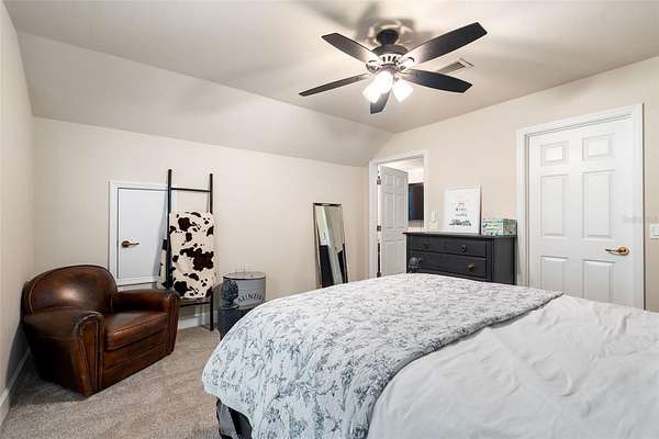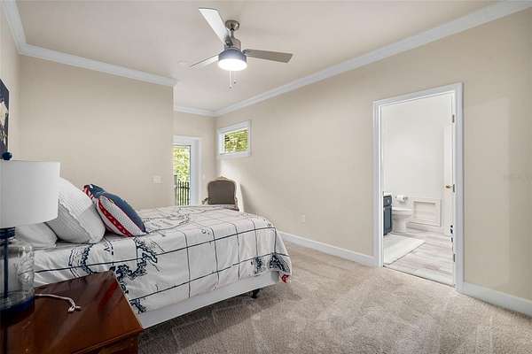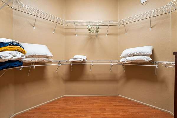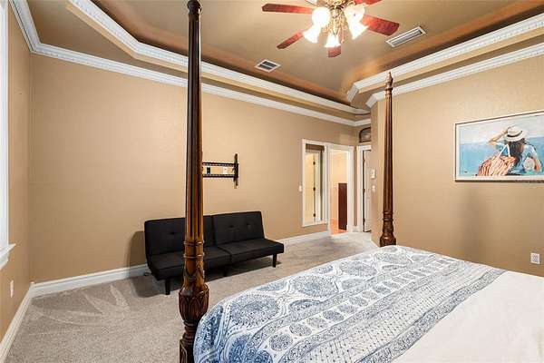 - Ceiling Fans(s), Crown Molding, High Ceilings, Primary Bedroom Main Floor, Solid Surface Counters, Solid Wood Cabinets, Stone Counters, Thermostat, Walk-In Closet(s)
