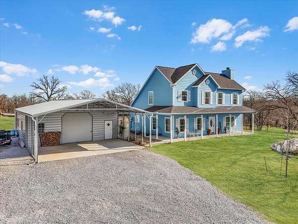 Stunning country setting on 23 acres! This modern country home offers beautiful views, mature trees, and room for animals, hobbies, or future plans. Built in 2022, the well-maintained 2-story home features 4 bedrooms, 2.5 baths, a first-floor primary suite, luxury vinyl flooring, granite countertops throughout, and like-new carpet in the bedrooms. Located in Springtown ISD, the property includes two wells, perimeter fencing, landscaping, sprinkler system, gutters, an insulated well house, and three tanks. An exceptional 30x38 insulated shop with 200-amp electric, concrete slab, rough-in plumbing, and two roll-up doors. Plus a 22x30 carport with concrete slab and additional gravel parking support a variety of uses. NO RESTRICTIONS, AG exempt, cattle guards with dual driveways, minutes from Springtown amenities, and approximately 33 miles from Fort Worth. One-of-a-kind property offering privacy, space, and modern country living!