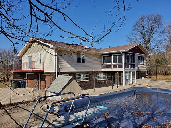 Fabulous country living with room for everyone is yours in this sprawling 5 bedroom, 3 bath bi-level situated on 3 gently rolling acres! The upper level features a spacious living room with fireplace and sliders to a deck. The granite and oak kitchen has a dining area with sliders to a sunny 3 season room. A combined formal dining room and sitting room provide even more space for larger gatherings. The main bedroom has an en suite bath and walk out door to decking. 3 more generous bedrooms, one with lots of built-ins and another full bath complete the main. The lower level is amazing, featuring a huge rec room with fireplace, kitchen with bar and dining area with doorway to the patio and stunning 18x36 diving pool! There's another bedroom, bath and laundry/utility room, making the lower level perfect for related living or guest quarters. Upgraded electric and a new boiler. A car port, oversized 2 car garage and a 62x32 pole barn mean plenty of room for all of your vehicles, tools, toys and even chickens. The site consist of three platted lots, two of which are buildable for future homes. Homeowner is a licensed Indiana Real Estate Broker.