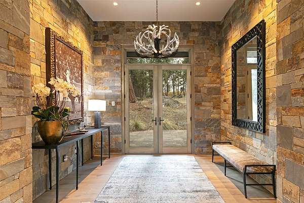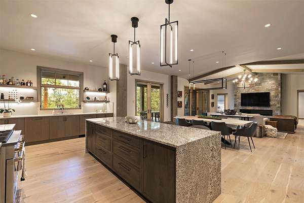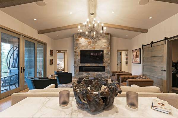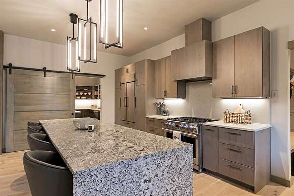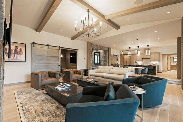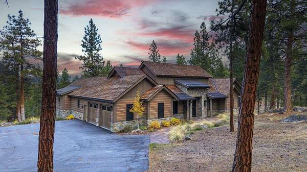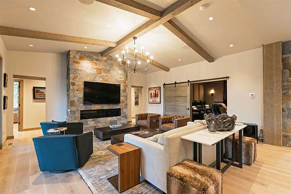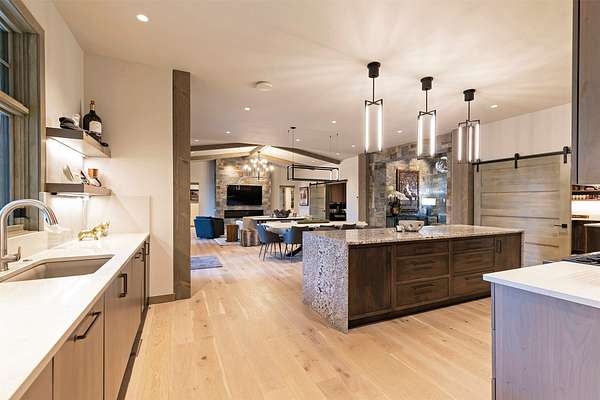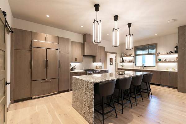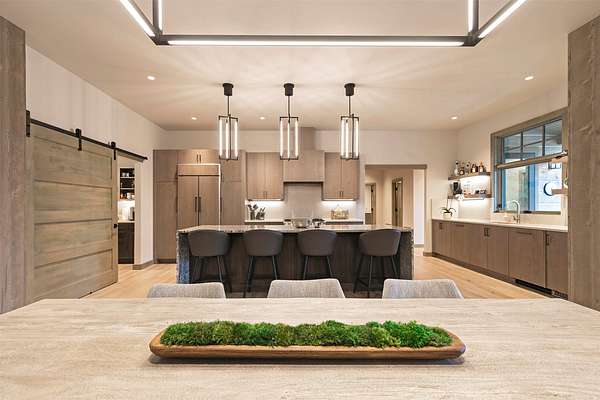 Stunning new western/modern home w/ 4 beds, 4.5 baths offers a blend of nature & convenience! Just a stroll to the Stock Farm golf course, clubhouse, & more, offering exceptional views & privacy. Feel welcomed as you enter this fabulous open-concept home with an expansive, magical outdoor space, perfect for gatherings of up to 40 guests, or quiet evenings with visits from deer, turkeys, & more. Inside, the expansive primary suite features an office nook, private laundry, & a large shower & tub. Each thoughtfully planned guest room offers its own ensuite, ensuring privacy & space for everyone & a private laundry area. The den, or the "Moose Media Room", is located off the living room & offers entertainment galore! The kitchen, featuring a butler's pantry with a sliding door, w/ plenty of room for meal prep, 4-person bar seating, an 8-person dining table, & over 17 outdoor seats around the custom firepit. Basement wine storage. Finished oversized garage. Sprinkler system for landscaping. See video. RO Water system for home, mudroom, private driveway *Please contact listing broker regarding the use of Stock Farm amenities. Stock Farm membership is not included with the purchase of property*