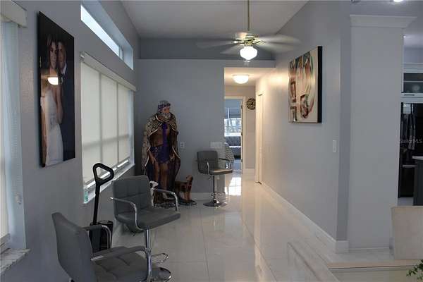 - Ceiling Fans(s), Eat-In Kitchen, High Ceilings, Living Room/Dining Room Combo, Primary Bedroom Main Floor, Split Bedroom, Stone Counters, Walk-In Closet(s)