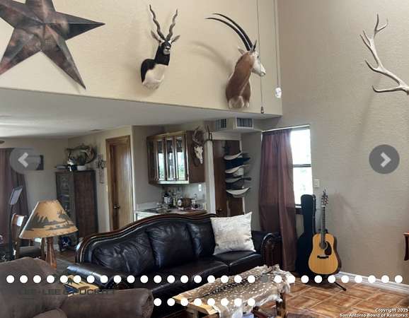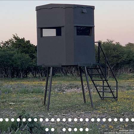 A perfect getaway ranch with many possibilities whether it be a hunting facility, an exotic breeding ranch, a personal recreational ranch or corporate retreat. Fully furnished equipped with all furniture, appliances, and household items needed for comfortable living. The Texas sized lodge has a great floor plan with one bedroom downstairs and a large sleeping loft with en-suite upstairs with a total of 7 beds to sleep 9 people comfortably. Soaring ceilings in the great room provide plenty of space for your mounts! The main lodge has a wood burning fireplace, a full kitchen, dining area, 2 bedrooms, 2 baths, sleeping sunroom, and an outdoor fire pit. Plus, a bunk house that sleeps two and has a full bath. There is a barn, walk-in cooler, meat processing room, and 700-yard shooting range. A new propane Cummins generator that kicks on automatically in event of a power outage. A shipping container for additional storage with a solar powered vent and 20x24 carport were added. 5 newly built concrete dog kennels under-roof plus 2 addition concrete dog kennels. In addition, there are 2 high fence kennels. RECREATION/HUNTING: The 300+/- ac. Horn & Antler Ranch includes a magnificent herd of exotic animals, including Axis, Whitetail, Fallow, Addax, Oryx, Gemsbok, Blackbuck, Llamas, and guardian donkey. All indigenous Whitetails have been removed, and the ranch is stocked with small amount genetic Whitetail Deer. Two large hunting blinds, all season protein and corn feeders. Room dimensions are to Independently verified.