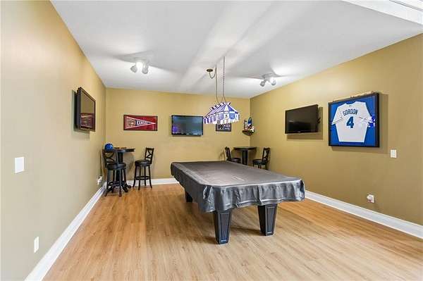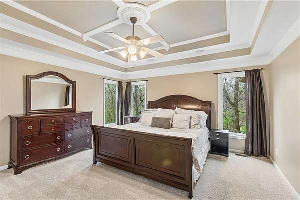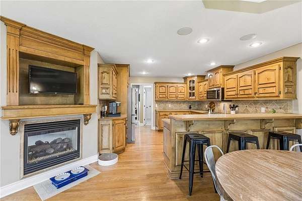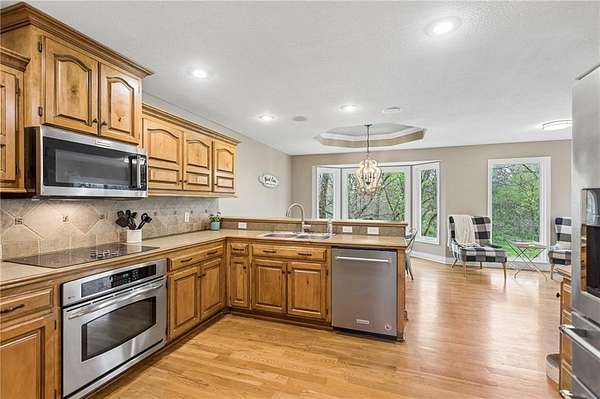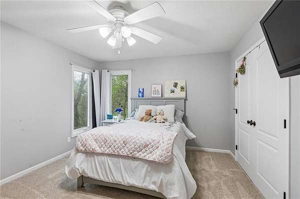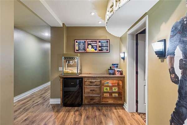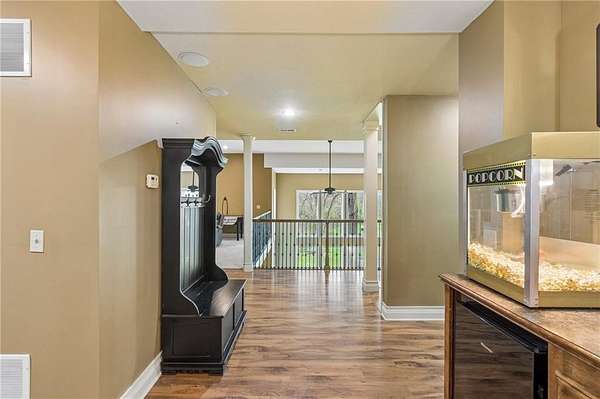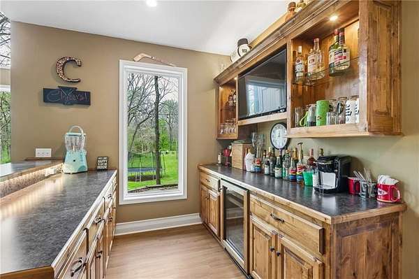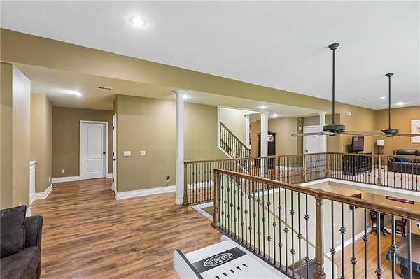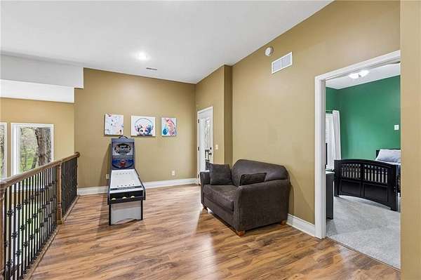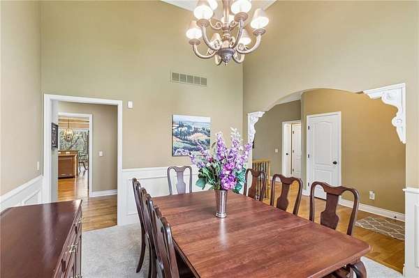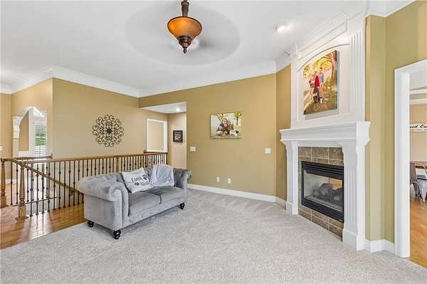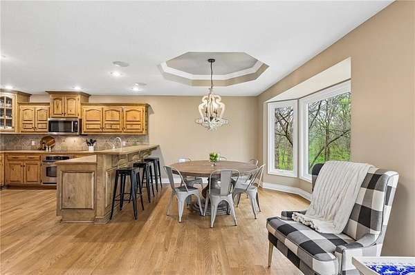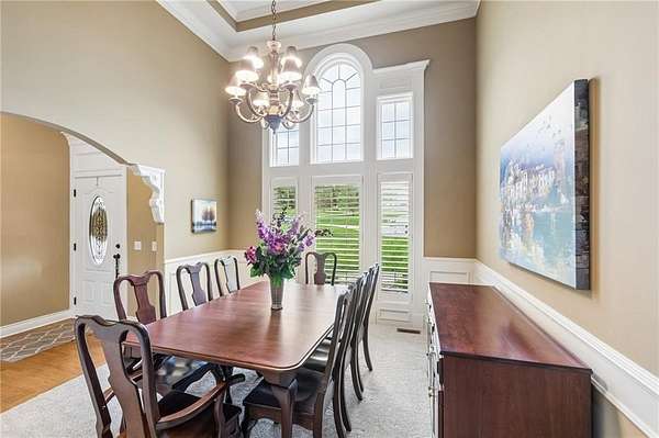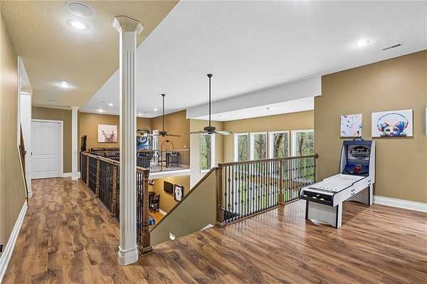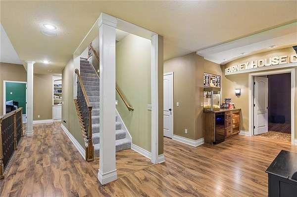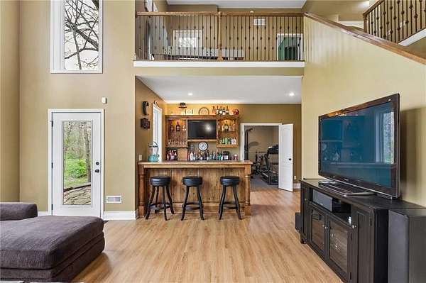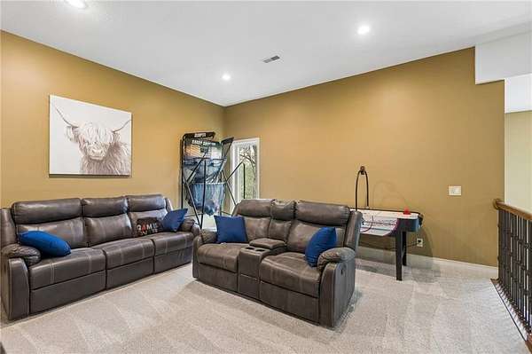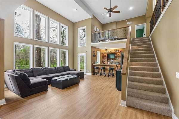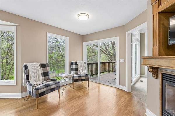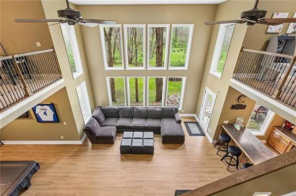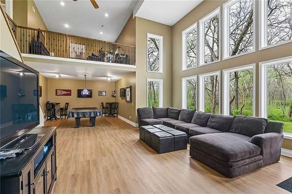 Private wooded views. Soaring ceilings. Your own in-home theater with concessions. This is the kind of home that was designed to be experienced-not just lived in. Featuring a home gym, a one-of-a-kind floor plan like no one you know has, and multiple decks perfectly positioned to take in the views-this is true luxury living built for entertaining and everyday enjoyment. From the moment you walk in, the scale and intention of this home are undeniable. Tall ceilings and expansive windows draw your eyes straight to the surrounding trees and natural views, creating a sense of privacy and calm that's hard to find. At the heart of the home, a unique mid-level living design sets the stage for what this property does best-entertain. Whether you're hosting movie nights in your dedicated home theater complete with its own concession area, gathering with friends across multiple living spaces, or simply enjoying a quiet evening taking in the views, every detail of this home was built for comfort, connection, and elevated everyday living. With over 5,600 square feet, 5 bedrooms, and 4 full bathrooms, there's room for everyone to spread out while still feeling connected. The finished lower level adds even more flexibility for entertaining, recreation, or creating the perfect guest retreat. Step outside and the experience continues. Nestled on nearly 2 private acres in the desirable Fox Run community, this property offers a rare combination of open yard, mature trees, and a peaceful creek that winds through the back of the land. From mornings on the deck to evenings around the firepit, this setting invites you to slow down and truly enjoy where you live. Located in the highly sought-after Kearney School District, you'll enjoy the convenience of nearby amenities while coming home to a space that feels like a retreat. Homes like this-where thoughtful design, privacy, and lifestyle come together-are rare. This is your opportunity to own something truly special.