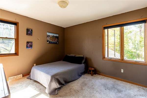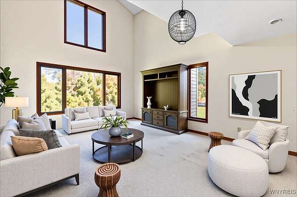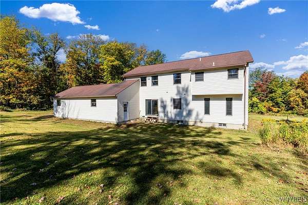 If you've been thinking about owning more land, there's no better place than this beautiful, private lot East Aurora! Welcome to the beautiful serenity of the countryside only 30 minutes from downtown Buffalo. This 3 bedroom, 3 bathroom house is set on 2.5 acres in the Town of Aurora, less than 5 miles from the Village of East Aurora. Trees line both sides of the driveway, leading to a grand house surrounded by a lush lawn, where deer pass daily to graze and repose. A walk down the driveway and around the property is a must to appreciate the beauty of the setting. This one-of-a-kind house was designed by an architect to complement the setting. Many windows bring the outside in and create a relaxing, peaceful environment. Large rooms on the first floor offer plenty of space for entertaining, lounging, and family fun. Possible fourth bedroom on the first floor. Hot water tank was replaced in September 2025. House is being sold "as is."