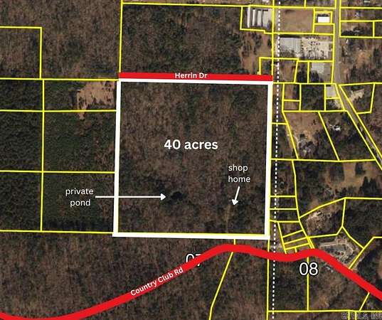 Welcome to 1442 Country Club Road, a 40-acre haven bordering Arkadelphia city limits. Only 5 minute drive from OBU/HSU campus and 13 minutes from Lake Degray. This beautiful property is mostly wooded, ideal for hunting, featuring a private pond. Access from both Country Club road and Herrin lane. Come inside to find the newly built 2-bed 1-bath shop home designed not only for comfort but functionality. The home features an open layout that flows seamlessly from the kitchen, dining area, and living area. The home's 12-foot walls give an ample feel. The beautiful, cleared yard is perfect for gardening, play, or a building site. The home has an attached garage space ideal for protecting your vehicle or workshop space. A 10x50 side shed around back offers more storage and workspace. Picture endless possibilities on this extraordinary 40-acre woodland canvas, whether you envision your dream home, development, or a farm. Do not miss your chance to call 1442 Country Club Road your own! MOTIVATED SELLERS make an offer!