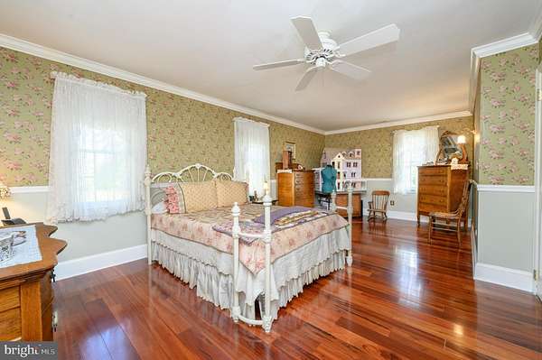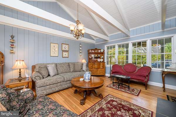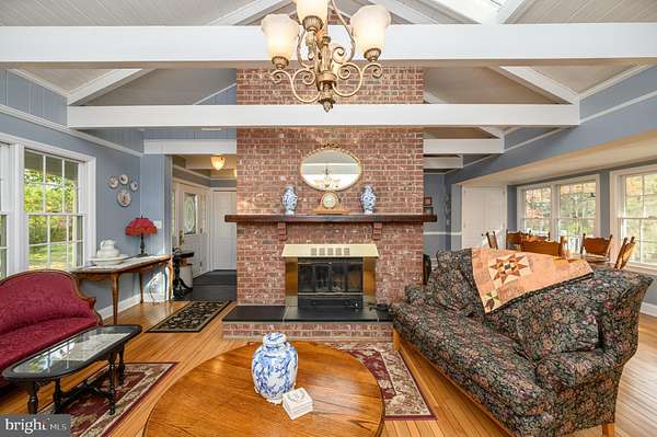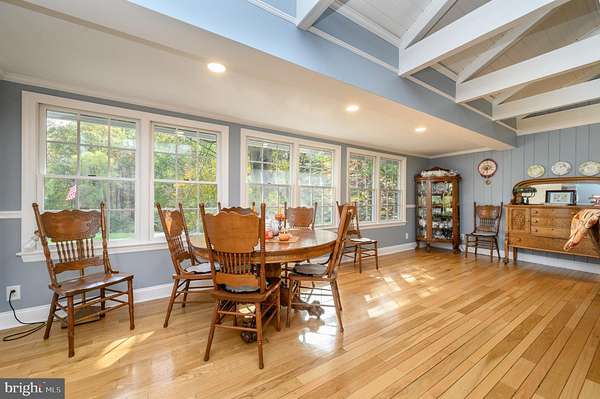 Welcome home! Beautiful 2 Bed 2.5 Bath Country Raised Ranch with impressive Finished Basement, Master Suite, and 1 Car Garage in peaceful Pennington could be the hidden gem you've been searching for! Set back from the road on 3+ sprawling acres, it's perfect for buyers looking for lots of land and a private estate of their own. Charming rocking chair front porch and curb appeal give way to a spacious and sophisticated interior with generous room sizes, elegant custom moldings, recessed lighting, hardwood floors that shine, and plenty of natural light all through. Lovely living room features soaring raised ceilings with skylights and exposed beams that truly open up the space, along with a cozy wood burning fireplace that is perfect for the season. Sunsoaked dining area is adorned with walls of windows, offering serene views of the plush property. Gorgeous country eat-in-kitchen offers sleek SS appliances, gleaming quartz counters, ample cabinet storage, and a center island that is ideal for gathering. Down the hall, find the main full bath along with 2 generous bedrooms with crown moldings, hardwood floors, and ceiling fans for added comfort, inc the Master Suite. MBR boasts its own walk-in closet and private full ensuite bath. Big finished basement almost doubles the living space, offering a large family room, recreation area with 2nd wood burning fireplace, home office, convenient 1/2 bath, and extra bonus room, currently a craft room, that can double as a bedroom, 2nd office, den, etc! Laundry room with storage, utilities and water softener too. Expansive outdoor area holds a multi-level deck leading down to a covered patio, perfect for al fresco dining. Several storage sheds, an oversized outbuilding, and freestanding barn is an added bonus, perfect for all of your equipment, great for contractors, hobbyists, etc, with plenty of extra space to expand and play. All of this and more, ready and waiting for you. Don't miss out! Come and see TODAY!