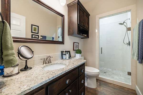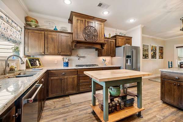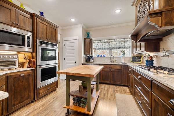 Gourmet Kitchen: Designed for the home chef with KitchenAid appliances, a custom Dacor propane cooktop, granite countertops, and sleek soft-close cabinetry.