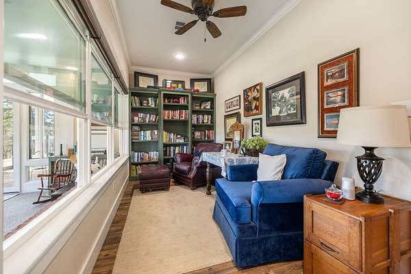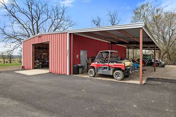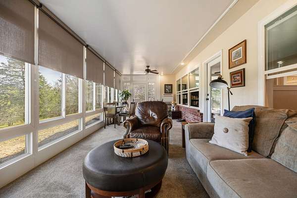 The Land: The immediate acreage features Pony Creek frontage, visible from the sunroom, and has been thoughtfully planted with chestnut, hazelnut, and oak trees, alongside thriving blackberry bushes.