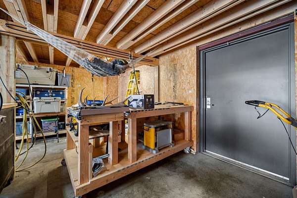The Shop (30x50): Every craftsman's dream. This workspace is double-insulated, equipped with water, electricity, and a wood stove. It includes a storage loft and two large security safes that convey with the sale.
