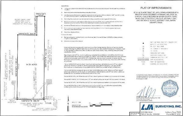 Snatch up this unrestricted 14.39 acres perfectly distanced outside Lubbock, and start living life on your own terms today! -Owner Financing Available -No Restrictions -Power On-Site -Clear Ground - No Oil & Gas Equipment -Legal Road Access -New Survey -Very Buildable: Level, No Wetlands -Priced Well Below Market Discover 14.39 acres of unrestricted Texas land that's perfect for residential, agricultural, or recreational use-an ideal canvas for your dream home or weekend getaway. This flat, cleared property features extensive road access and no floodplain or wetlands obstructions, making buildability exceptionally easy. Specifically, you'll enjoy 489 feet of frontage along the oil & gas easement road which provides power and legal access year-round. With no deed restrictions or HOA, you're free to install RVs, mobile homes, barns, livestock, or anything else your heart desires, and the new survey available will help guide your way.