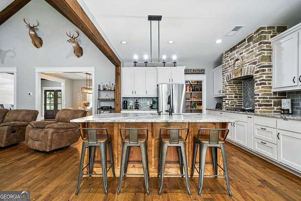 Custom-Built Private Estate on 8.49 Acres in Clayton Community of Canton, GA! Discover this stunning 2022 custom-built home offering 3,554 sq. ft. of living space, featuring 5 bedrooms, 2.5 bathrooms and a full unfinished basement ready for your personal touch. Tucked away at the end of a long gravel drive that transitions to concrete near the home, this property provides unmatched privacy and tranquility, while still being just minutes from shopping, dining, and I-575. Set on 8.49 acres, including 3 acres of open yard, there's endless room for recreation, gardening, or even adding a detached garage or workshop. The oversized two-car garage boasts tall doors for larger vehicles, while the exterior showcases durable fiber cement siding, fascia, and soffit for low-maintenance living. Step inside to an open floor plan with high-end finishes throughout. The vaulted great room and master suite create a grand, airy feel. The master retreat features a luxurious spa-like bath with a Jacuzzi tub, double-headed tile shower, and a large walk-in closet complete with shoe shelving and a hidden safe room. Additional highlights include hardwood flooring on the main level, tile in bathrooms, plush carpet in bedrooms, a spacious laundry room with sink and dog shower, and a tankless hot water heater. Enjoy outdoor living at its finest on the vaulted covered back deck with an adjoining open-air section-perfect for entertaining or simply taking in the serene surroundings. Located in the sought-after Clayton Community of Canton, this property offers the best of both worlds: peaceful seclusion with easy access to Riverstone Parkway, Downtown Canton, and beyond.