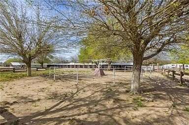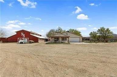 At the heart of the property is the famous "Red Barn," a true western landmark, fully outfitted with a commercial kitchen, banquet rooms, bridal suite, restrooms, and workshop - ideal for events and gatherings. The ranch boasts a complete equestrian setup including 17 horse stables, a 1/2 -mile race track, birthing stalls, pastures, a massive hay barn, and a full horse training facility.