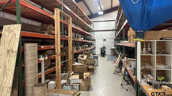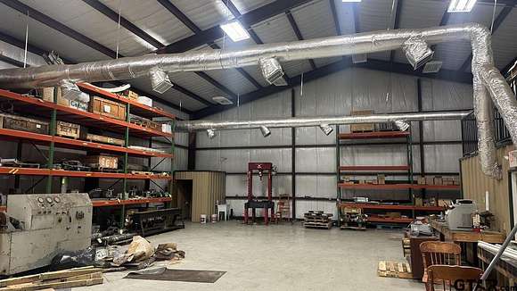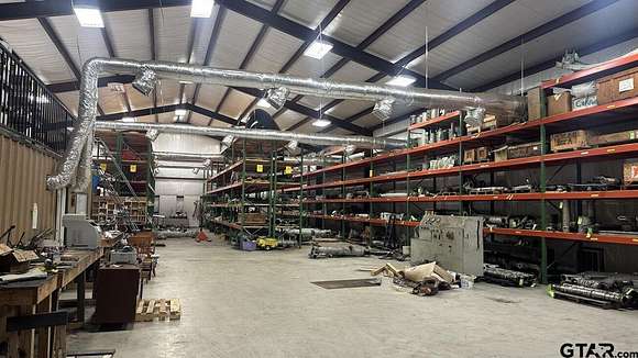 This exceptional 4-acre commercial property at 14437 FM 346 W, located just 10 miles south of Tyler, offers a rare opportunity for businesses and investors. The 7,500 square foot steel-frame building, constructed in 2008, features high ceilings (20' walls to 26'), two oversized overhead doors (including a dock-high bay), and full climate control with five commercial-grade HVAC systems. The property also boasts 250 feet of road frontage and a stabilized yard, ensuring functionality and ease of access for a variety of uses. Positioned outside city limits, this property combines the peaceful atmosphere of a rural setting with excellent proximity to Tyler and surrounding markets. With ample acreage for expansion or future development, this site is perfect for businesses seeking a strategic location to grow or for investors looking to capitalize on the area's ongoing development.