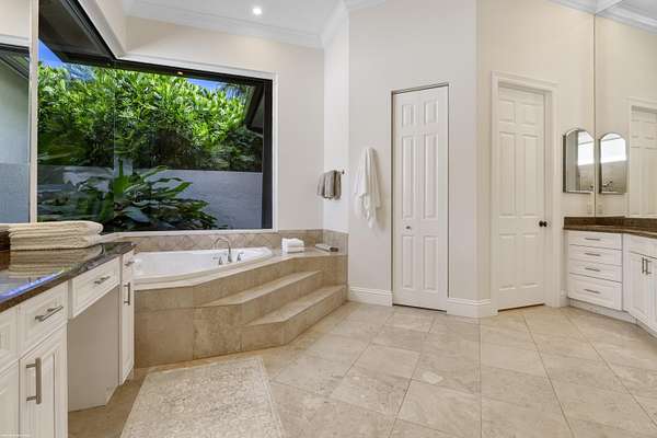 - Built-In Features, Cabana Bath, Entrance Foyer, High Ceilings, Kitchen Island, Split Bedroom Layout, Walk-In Closet(s)