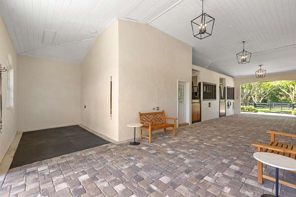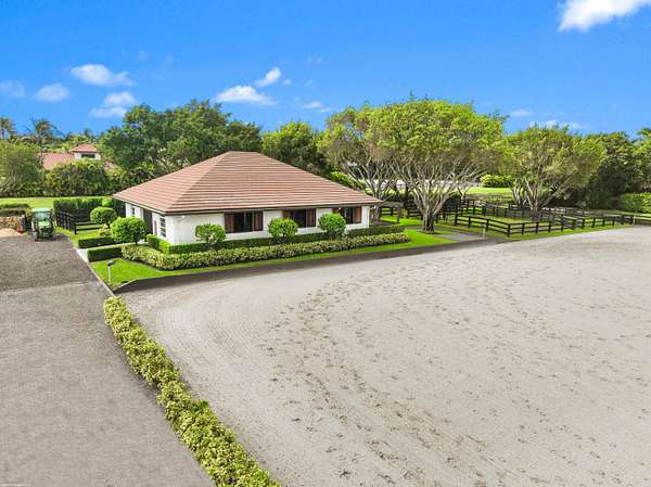 Reduced $250k! Meticulously equestrian property on an oversized 2.33-acre lot in Paddock Park 2, backing to the bridle path & canal. Boasting a freshly updated 5-stall center-aisle barn w/new pavers & tack room, 225' x 130' Wordly Martin riding arena, & 5-grass paddocks, plus a 2,280 sq. ft. detached garage offering flexible options for more housing, storage & parking of trailers or RV's. The residence with an open floor plan has been well maintained with recent updates to the kitchen, guest bathrooms, laundry room, flooring, pool & patio, plus new RO-water system, newer roof & impact windows & doors. The home features a large game room & lock-off studio suite w/separate entrance, perfect for staff. The gated grounds are beautifully landscaped, offering the perfect oasis for your horses. Additional features: Game room could be a 5th bedroom and has access to a full bath. Office/study near the primary bedroom suite. 3-way split bedroom plan. Heated & salt-chlorination pool. Full-house generator. 500 gallon propane tank New Roof in 2021 Gated circular driveway for the residence. Separate driveway to the stables. Mature Landscaping for absolute privacy. Direct bridle path access. "Barnwalker" stall fronts Upgrades since March of 2025: Remodeled tack room, added the washer & dryer, new refrigerator and hot water heater New brick paver aisleway New wash rack New irrigation cannons on the arena New irrigation pump. New RO-water treatment system. Everything has been freshly painted inside and out in 2025. New security cameras throughout the property & stables. New impact windows in the barn. All new pool equipment & pool heater.