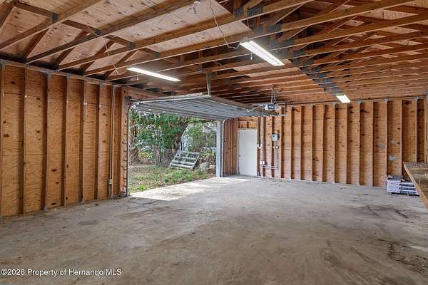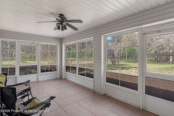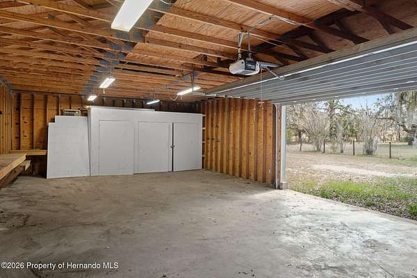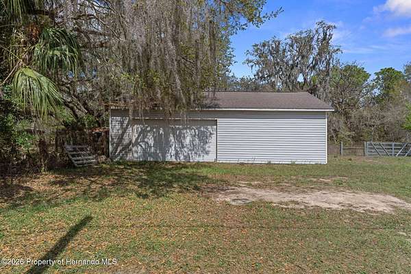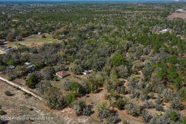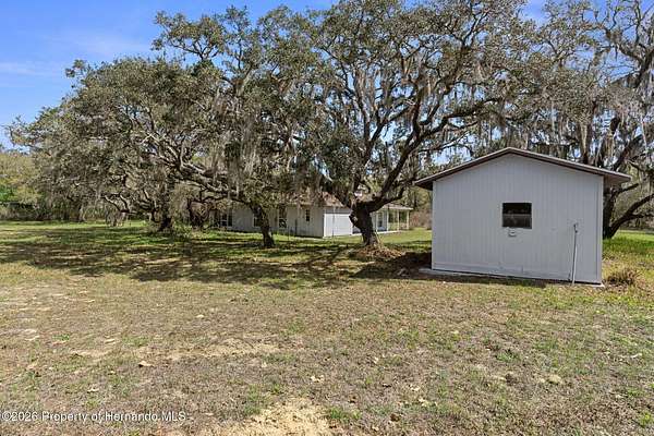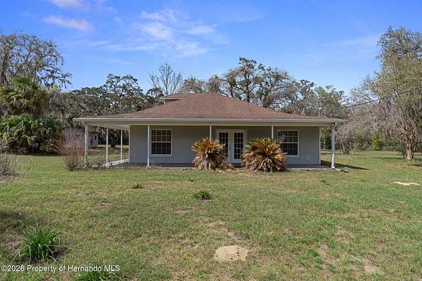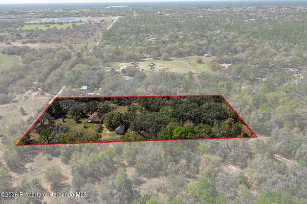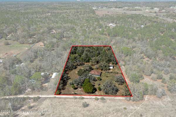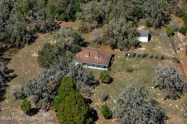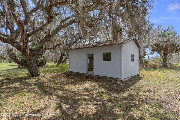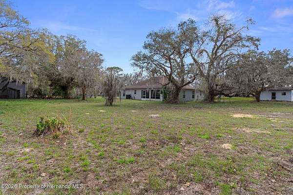''Spread out'' on these 5 acres of land, MOL, with a custom-built home, updated with granite counter tops in kitchen and baths, stainless steel appliances, and tile floors everywhere except the master bedroom. The entire interior has just been freshly painted and there is a new, well pump house. The house has a wraparound porch on 2 sides and a closed-in back porch with windows all around for a great view of the beautiful grounds, with scattered oaks and other plants and shade trees. And all of you who like to have an area to work on a project and/or have room for that ''special car'', will love the spacious 24 x 40 detached garage, with electric door opener and window AC. Also, if you want a place to ''do your own thing'', there is a separate building, 12 x 20 ft, with window AC to do it in. The grounds are completely fenced and cross fenced and there is a covered horse stall in the rear of the property that at one time housed a horse, so horses are definitely welcome here and dogs would love to run and play in the open, cleared areas. Even though you will feel like you're in the country, it's so peaceful, you will be close to schools, shopping, medical facilities, restaurants and the Suncoast Expressway.