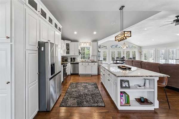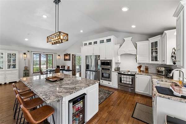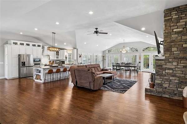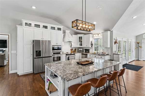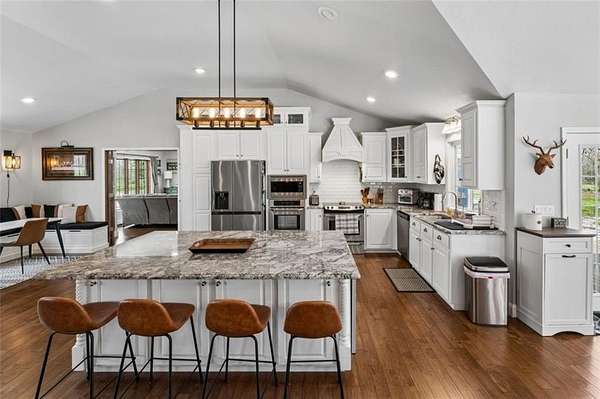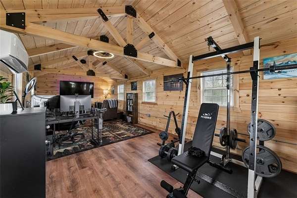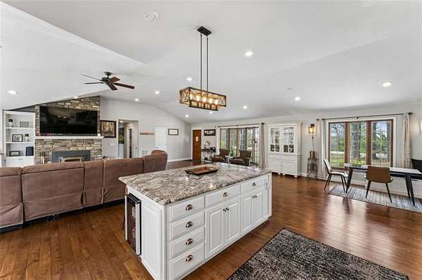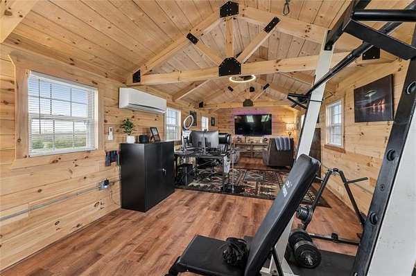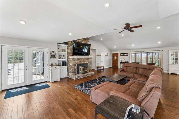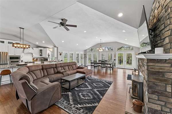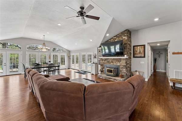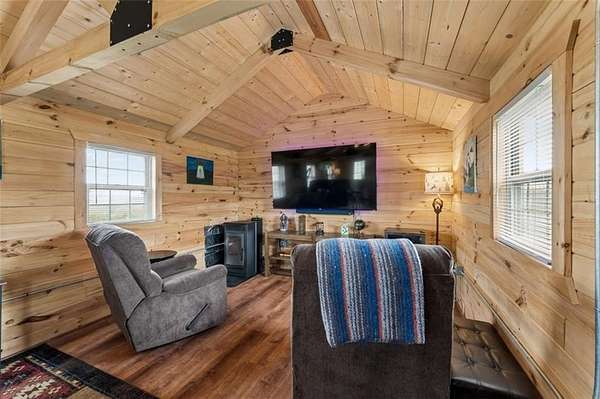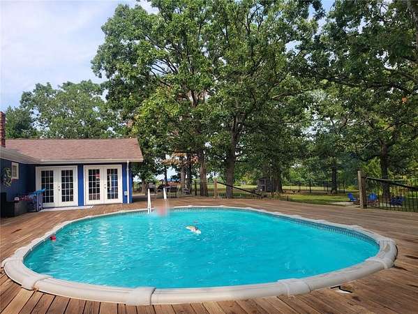 Welcome to 14441 Highway U, Cross Timbers, MO 65634, a beautifully maintained 3-bedroom, 3-bath home with over 3,700 sq ft, perfectly positioned on 20 scenic acres of mixed open land and mature woods. This is where modern comfort meets rural independence. From the moment you arrive, the oversized driveway and attached two-car garage with workshop space set the tone for functionality and scale. Step inside to discover a bright, open layout featuring quartz countertops, stainless steel appliances, and warm hardwood flooring, all anchored by a cozy living room fireplace that creates the perfect gathering space. The heart of the home flows seamlessly into a stunning dining area wrapped in windows, flooding the space with natural light and offering uninterrupted views of your private land. Just beyond, step out onto the expansive deck, where an above-ground pool with electric heater and outdoor entertaining space create the ultimate setting for summer nights and weekend gatherings. The newly finished basement (2023) adds incredible flexibility with an additional bedroom and full bathroom, making it ideal for guests, extended family, or multi-generational living. Outside is where this property truly separates itself. Enjoy your own private pond, wooded acreage with established trails for ATV riding and hiking, and two deer stands, making this a dream setup for hunting and outdoor enthusiasts. A dedicated shooting range further enhances the recreational appeal. For those seeking versatility and income potential, the 12x36 Amish-built log cabin with heat, AC, and pellet stove offers the perfect guest retreat, Airbnb opportunity, or private office space. Located on a paved road in the peaceful Cross Timbers area, this property offers the privacy buyers crave without sacrificing accessibility. If you've been searching for a Missouri acreage home with land, privacy, hunting, and modern upgrades. This is it. Optionally comes fully furnished.
