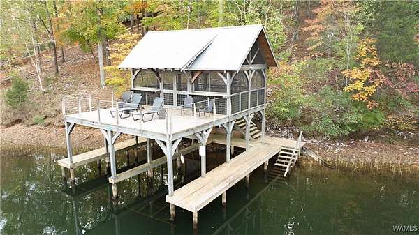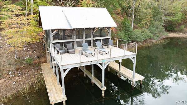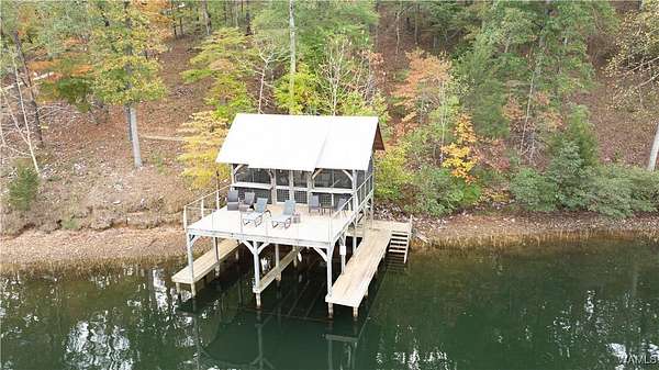 Stunning Views from this Lake Tuscaloosa Lot and two story boathouse! Approximately 1.8+/- Acre Lot that has a custom built boathouse with 2 boat slips/ screened area for entertaining represents approximately 380 square feet/ timber frame construction with electricity and spacious open deck area for sunbathing. Panoramic vistas from the boathouse and lot create a captivating environment for relaxation/ privacy/ and the perfect escape from demanding daily life! Perc tests have already been done for suitable septic system. Must see this lot to truly capture the sense of nature's beauty and tranquility. Perfectly suited for primary residence or second home retreat on Lake Tuscaloosa. Shared driveway for 3 large estate sized lots. Call today to view this exquisite lot and boathouse!