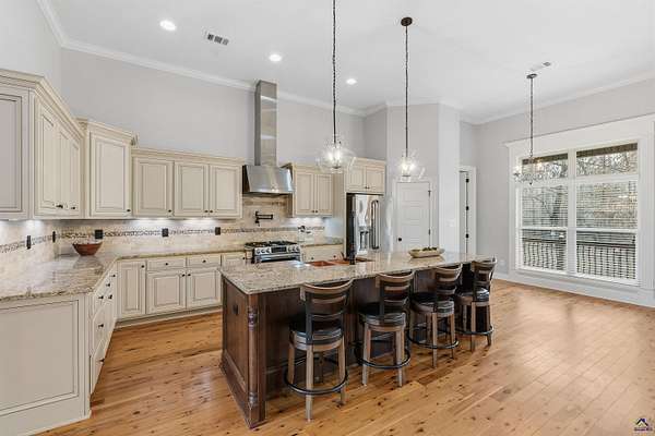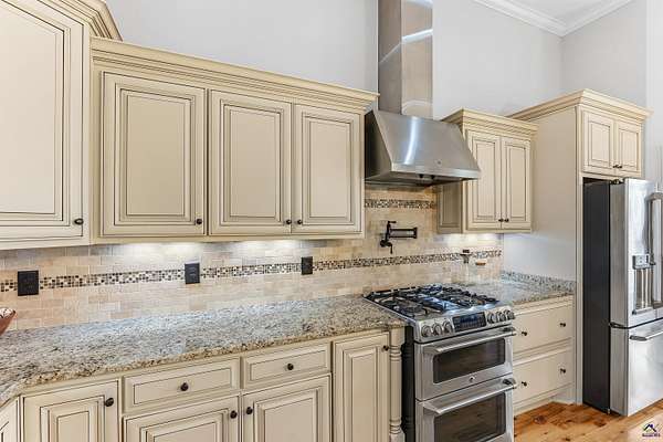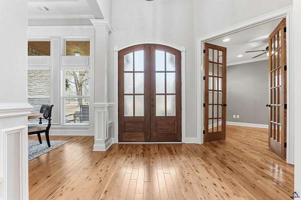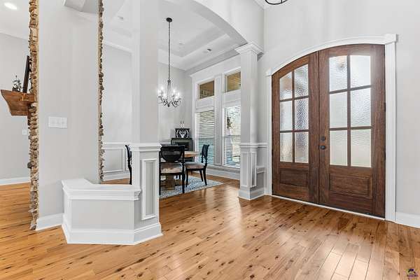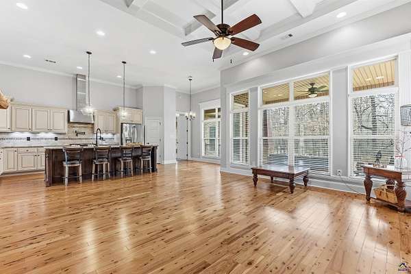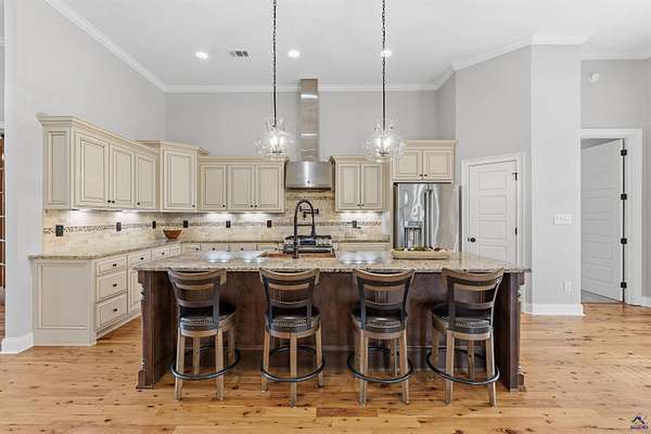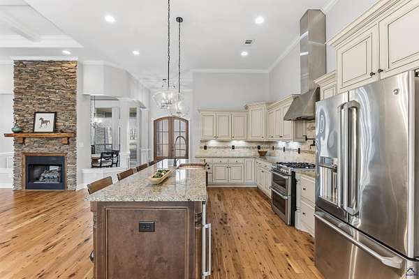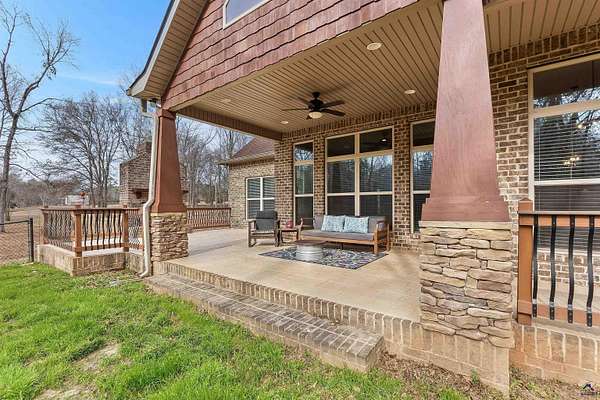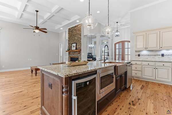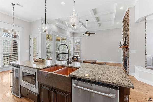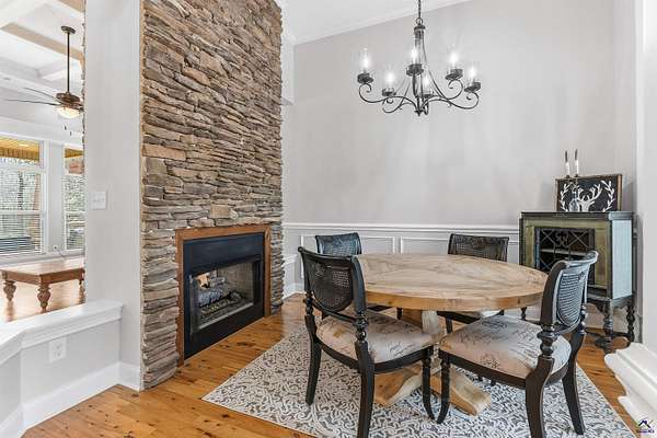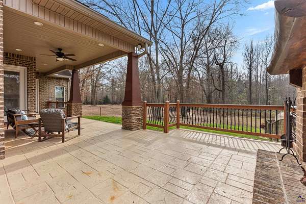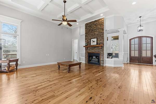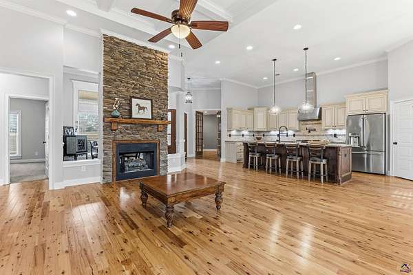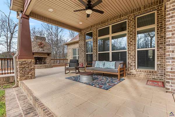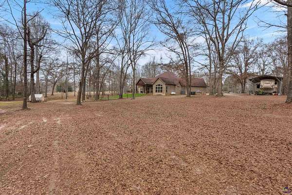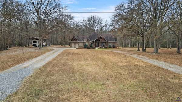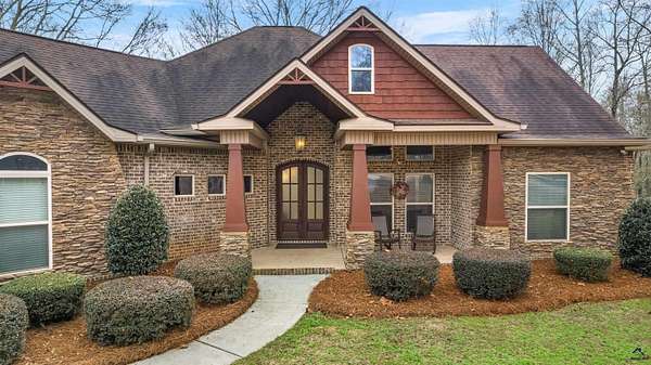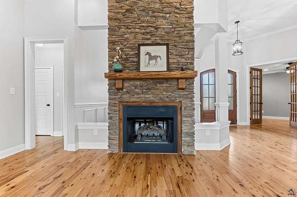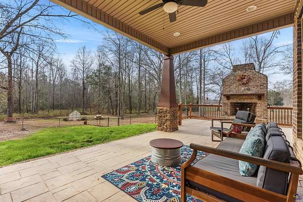15+ acres and a pond!!! Welcome home to your own private retreat just 10 minutes from downtown Perry. This beautiful 3 bedroom, 2 bath home sits on just over 15 acres, offering the perfect blend of peaceful country living and convenient access to town. Open floor plan. The kitchen features a large island, granite countertops, gas stove, wine fridge, and flows seamlessly into the living space, where a double-sided fireplace creates a cozy connection between the living room and formal dining room. The primary suite is a true retreat, offering private access to the back porch and a custom built in closet system. Step outside to the covered back porch and enjoy evenings by the wood-burning fireplace, overlooking the pond and acreage. This property truly offers it all!