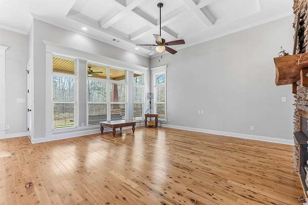 - Ceiling Fans, Gas Logs, Window Blinds, Wood Burning Fireplace