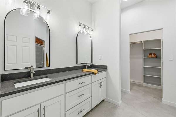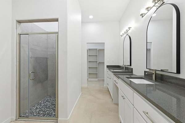 The open living area is anchored by double front doors and flows seamlessly into a well-appointed kitchen complete with double ovens, ample counter space, and a large walk-in pantry. Oversized bedrooms and spacious primary and secondary bathrooms provide comfort and flexibility for everyday living.