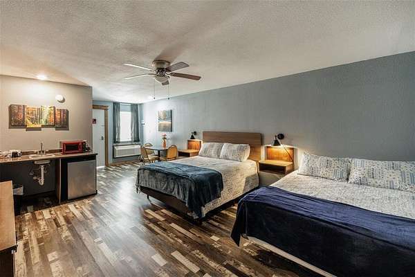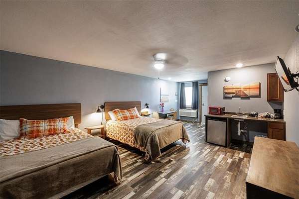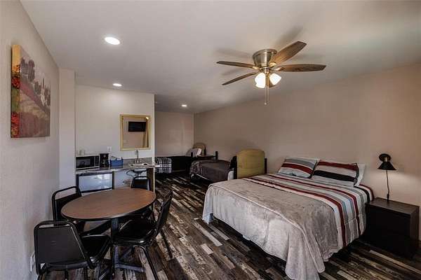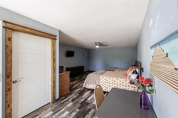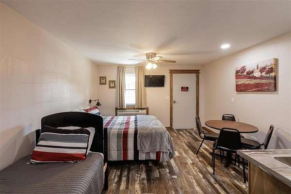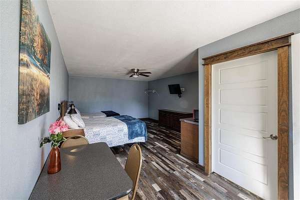 Est $3,128/moGreat opportunity to own a local rental property. Property has 7 rental units with kitchenettes, one is a suite with full kitchen. Utility room area for business. Includes another rental which is a tiny home behind it with a kitchen plus an additional lot behind the building with electric. Many recent recent updates including roof. Located across from the golf course and Lake Tawakoni boat ramp nearby.