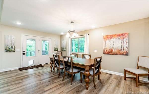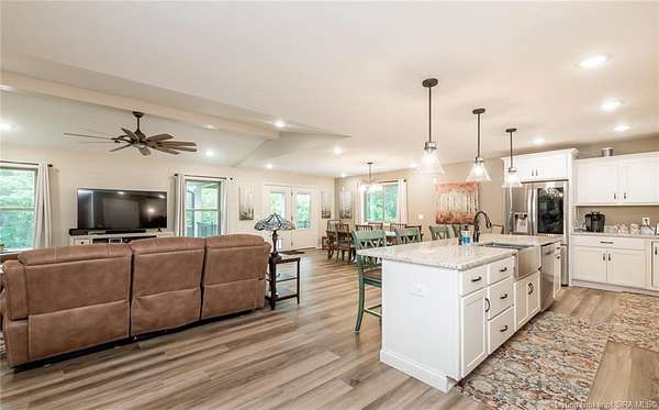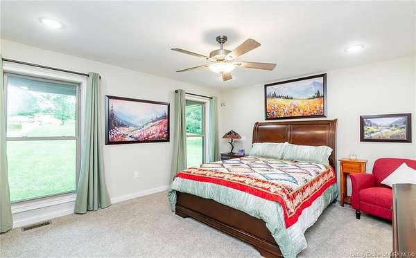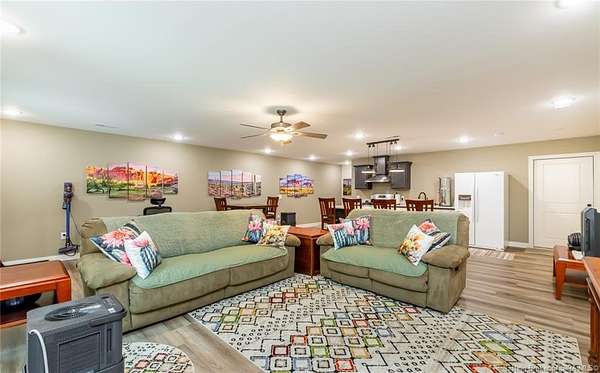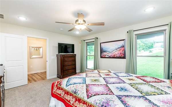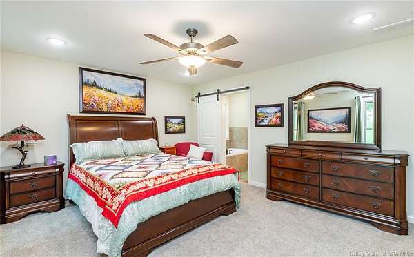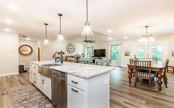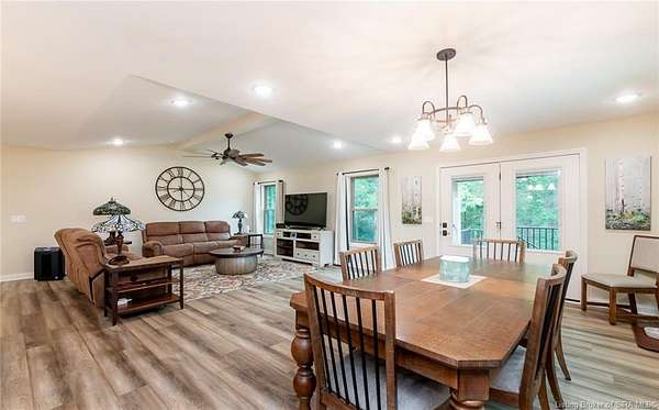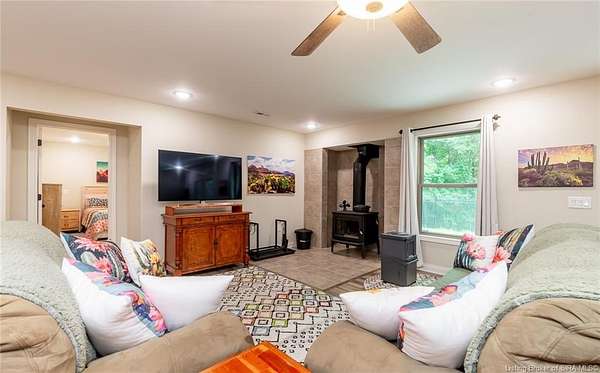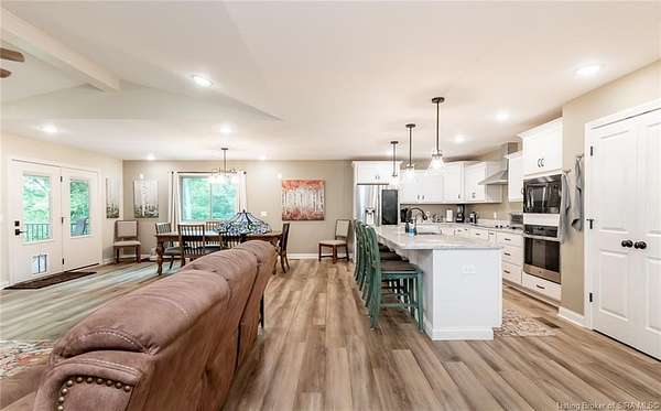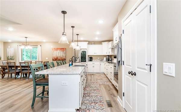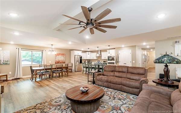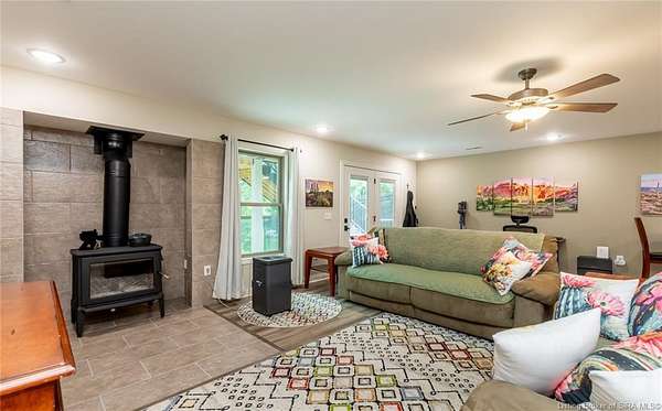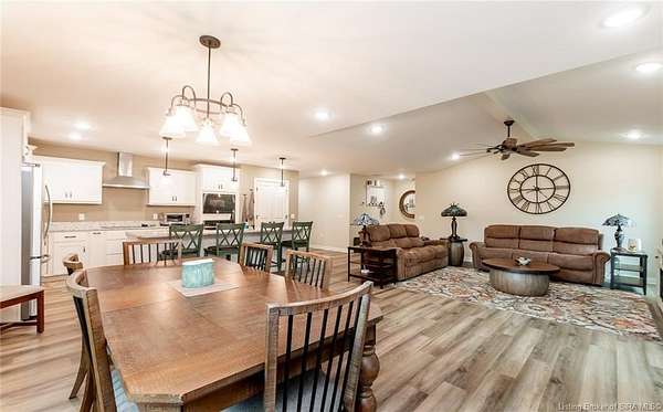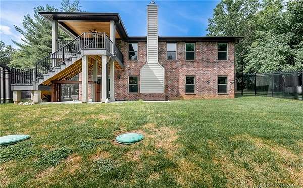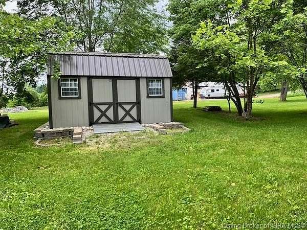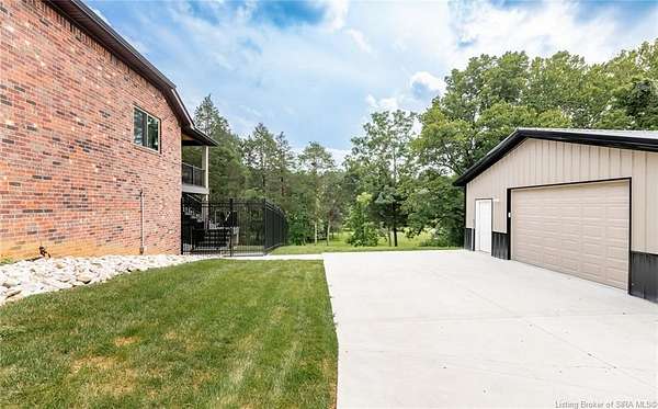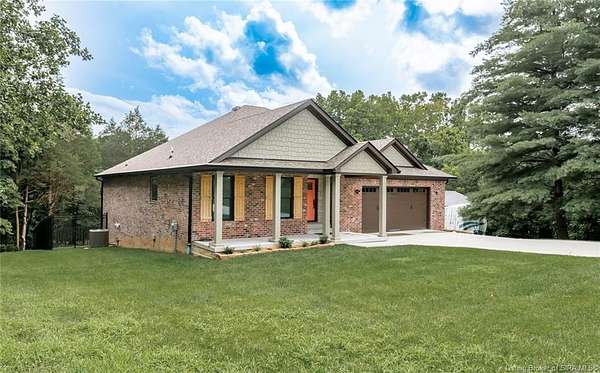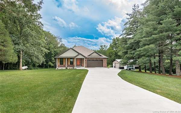 Amazing custom built home sitting on nearly 4 acres in beautiful Corydon,IN. There is a lot to love about this home. Highlights include 4 large bedrooms, two of which have their own full bath en-suite and walk-in closets, two full kitchens, large kitchen islands. Spacious open floorplan on the main level and the walkout basement. Dual-Source HVAC system(gas and electric), a wood stove as an additional and/or alternate heat source. Upgraded finishes throughout the home. Covered front porch and covered back deck with low maintenance composite decking boards, an 8 ft black iron fence around a portion of the back yard. The 12x16 Shed at the back of the property has water run all the way out, has a small loft for additional storage and an epoxy floor to help maintain and clean easy. This home also has a large 25x25 attached garage and an additional 30 x 24 insulated and heated pole barn with 10ft eave height, next to the home, both of which also have epoxied floors for easier maintenance and cleaning. The nearly 4 acres of beautiful land rolls gently behind the home to a large flat area with the mentioned shed, water spigot, and a large creek just behind the property. This area awesome area has been used for play, entertainment, gardening , or just relaxing and enjoying the roaming wildlife.