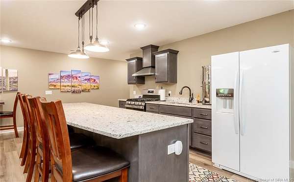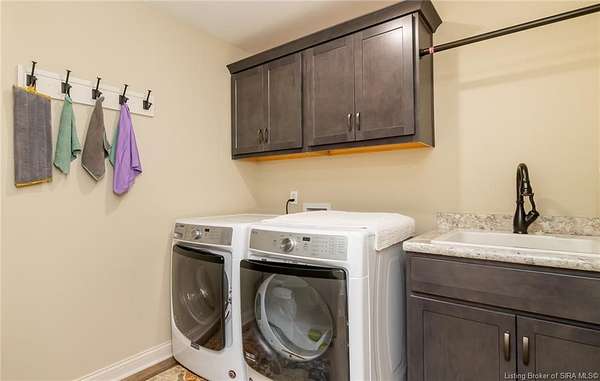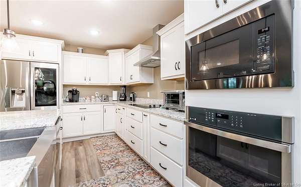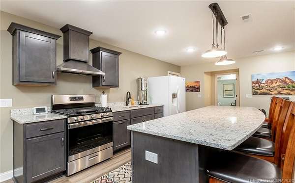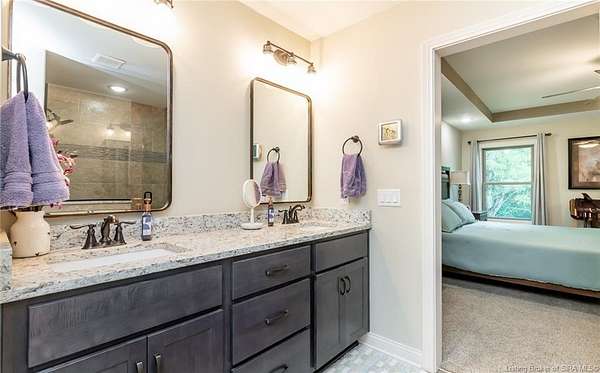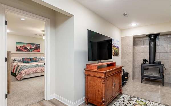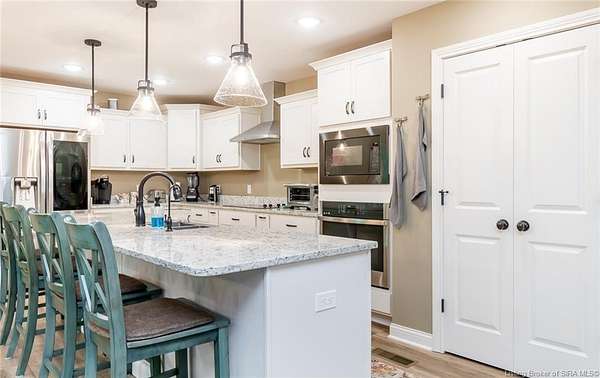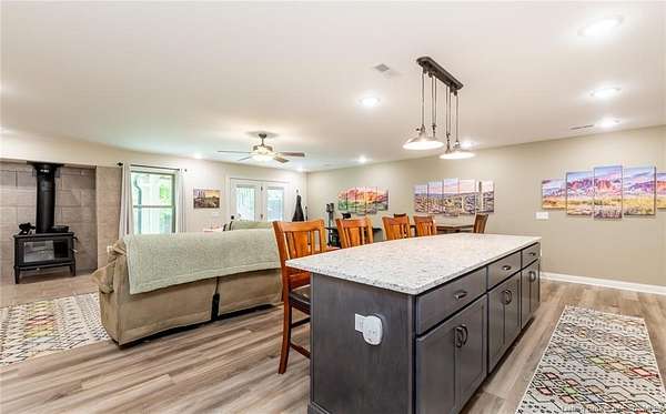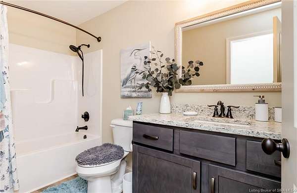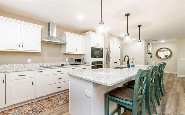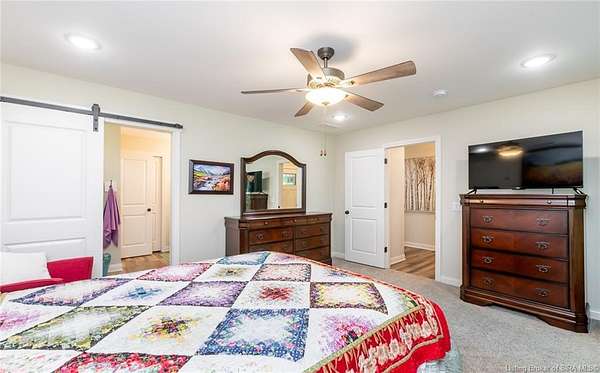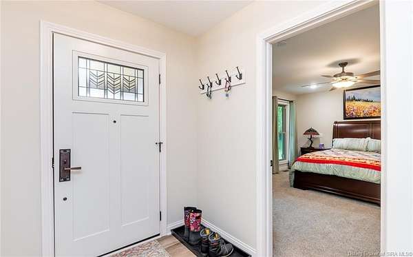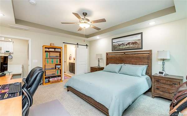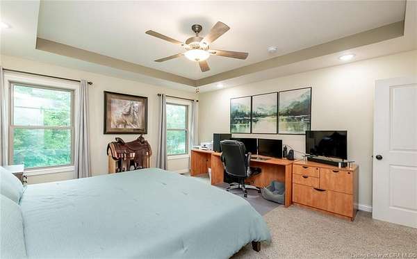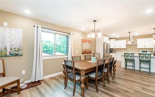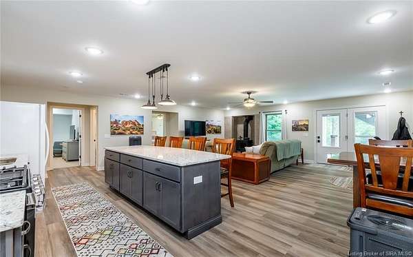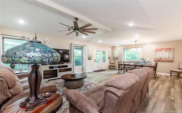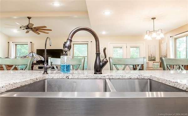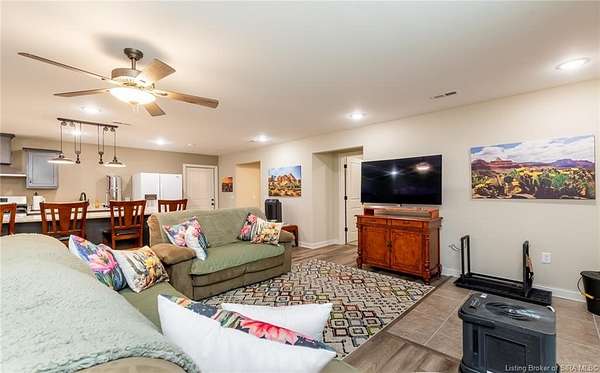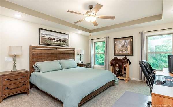Amazing custom built home sitting on nearly 4 acres in beautiful Corydon,IN. There is a lot to love about this home. Highlights include 4 large bedrooms, two of which have their own full bath en-suite and walk-in closets, two full kitchens, large kitchen islands. Spacious open floorplan on the main level and the walkout basement. Dual-Source HVAC system(gas and electric), a wood stove as an additional and/or alternate heat source. Upgraded finishes throughout the home. Covered front porch and covered back deck with low maintenance composite decking boards, an 8 ft black iron fence around a portion of the back yard. The 12x16 Shed at the back of the property has water run all the way out, has a small loft for additional storage and an epoxy floor to help maintain and clean easy. This home also has a large 25x25 attached garage and an additional 30 x 24 insulated and heated pole barn with 10ft eave height, next to the home, both of which also have epoxied floors for easier maintenance and cleaning. The nearly 4 acres of beautiful land rolls gently behind the home to a large flat area with the mentioned shed, water spigot, and a large creek just behind the property. This area awesome area has been used for play, entertainment, gardening , or just relaxing and enjoying the roaming wildlife.