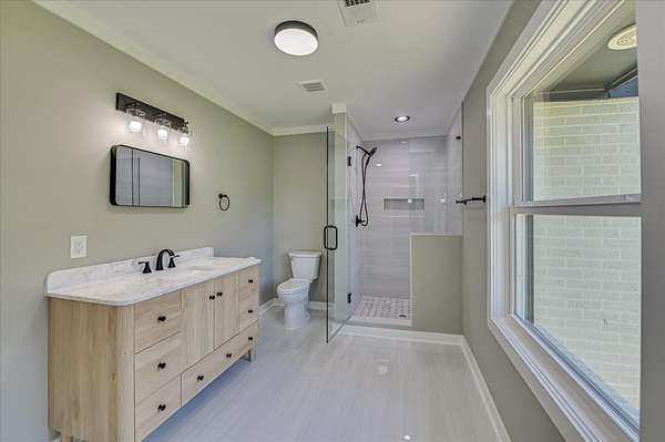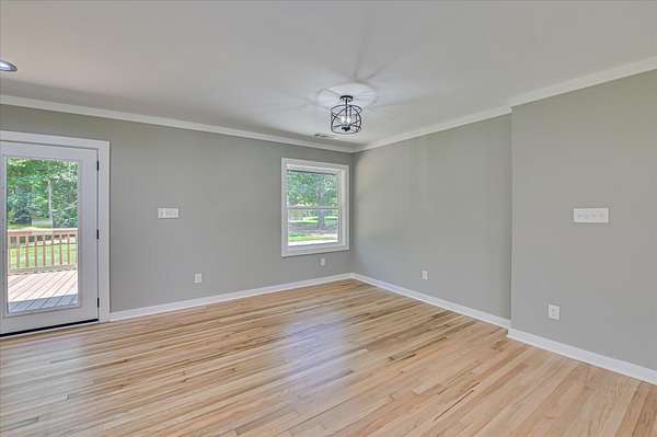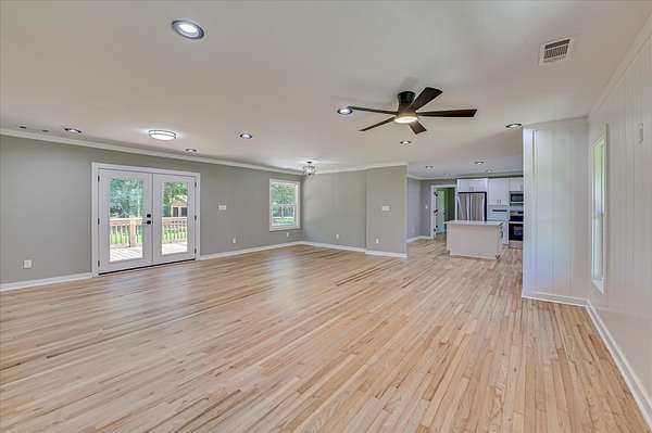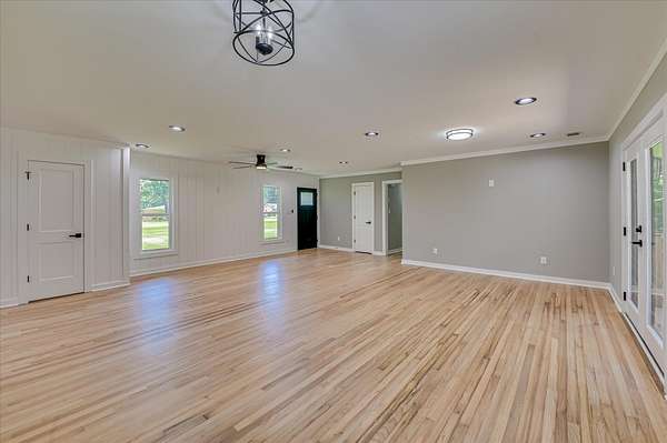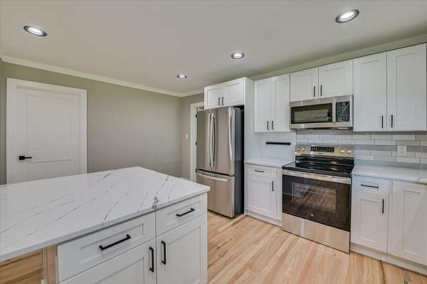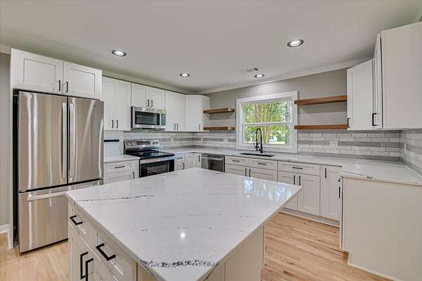 Big ranch with small town life! 4BR 3.5 BA complete, new remodel on just under 2 acres! Classic lines with the latest, modern touches. Spacious rooms with endless hardwood floors in main living areas. Open kitchen with granite countertops, top-end appliances and modern hardware throughout. The bedrooms feature large windows, spacious adjoining baths, and there is also a separate laundry/utility room right off the the kitchen and centrally located in the home. The level , shaded lot has room for a circular drive and more storage in the barn and building in the backyard. Fantastic floorplan= just add you