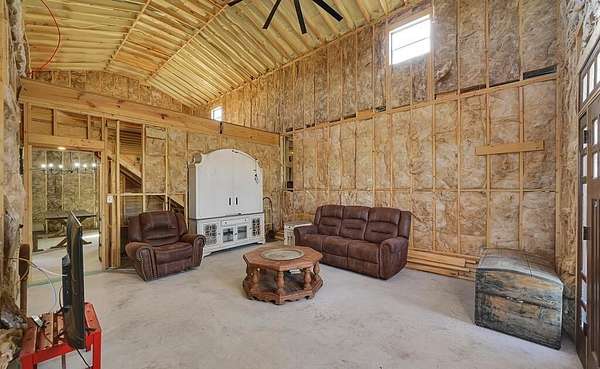 Discover this exceptional 2025-built barndominium offering endless possibilities on a private, fully fenced property. This home features unfinished interior space, ready for your personal touches and custom finishes. The thoughtful design includes a spacious upstairs loft with potential to accommodate two additional bedrooms, maximizing your living options.