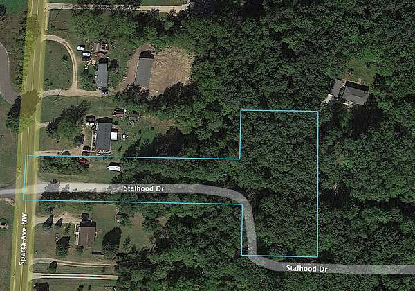 This 1.91-acre parcel off Stalhood Dr gives you a flat, tree-covered setting in Tyrone Township with private gravel-road access, a short drive into Kent City, and a straightforward run into Grand Rapids for work, shopping, dining, and entertainment.