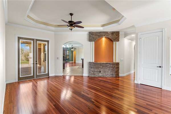 - Attic, Closet Cabinetry, Crown Molding, French Doors Atrium Doors, High Ceilings, Pull Down Attic Stairs, Split Bedrooms, Vaulted Ceilings, Walk In Closets